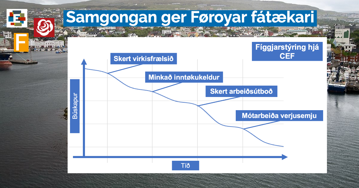 Ístaðin fyri at menna og stimbra føroyska búskapin, so hevur sitandi samgonga heldur framt og er í ferð við at fremja fleiri átøk, ið hava eina køvandi ávirkan á búskapargongdina: