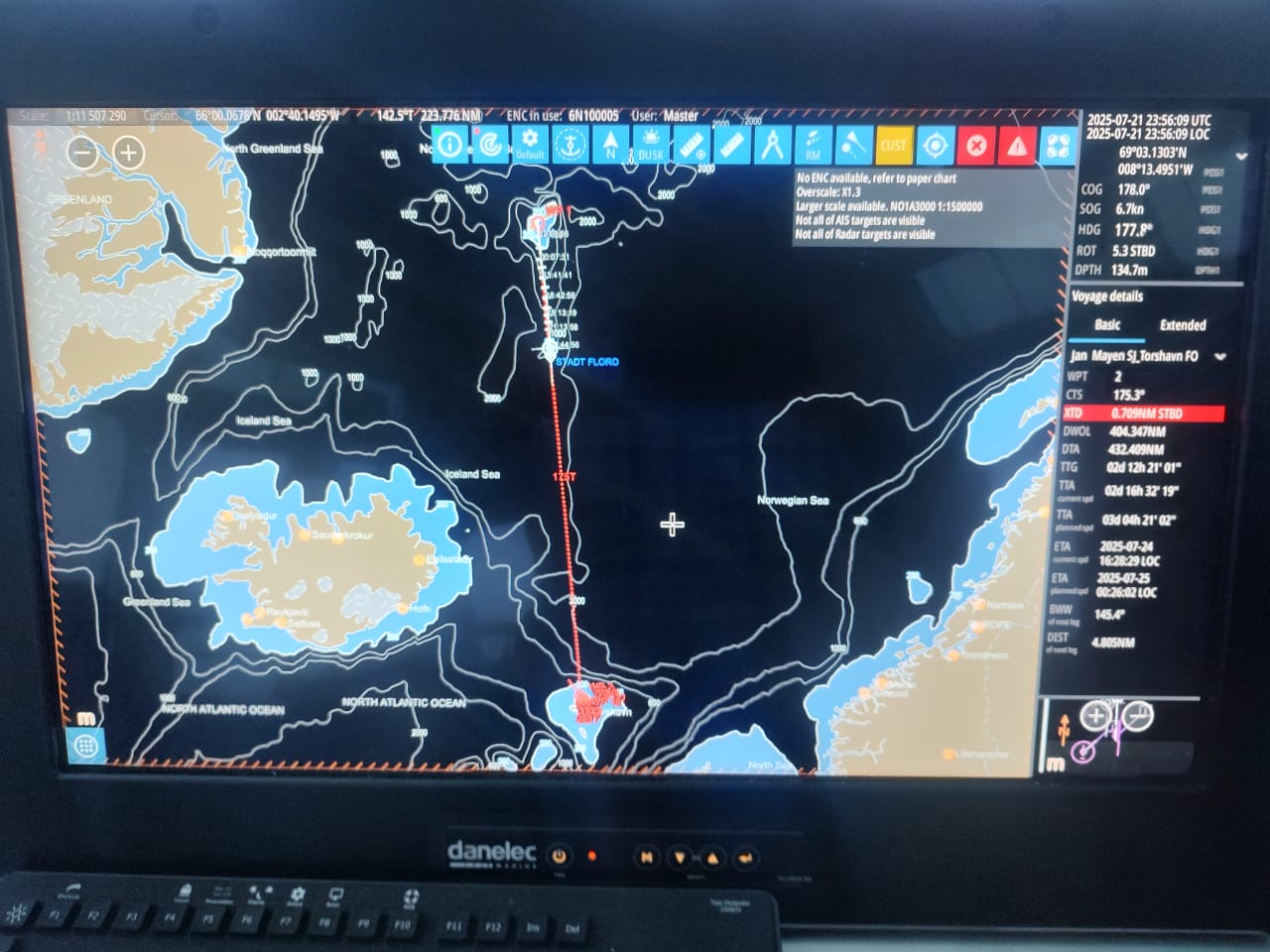 Ferðin norður gekk sera væl, og vóru teir frammi hjá sleiparanum klokkan 2 mánamorgunin. Aftaná at sett varð fast, varð kósin sett aftur á Havnina, har teir væntast at vera seint hóskvøldið.