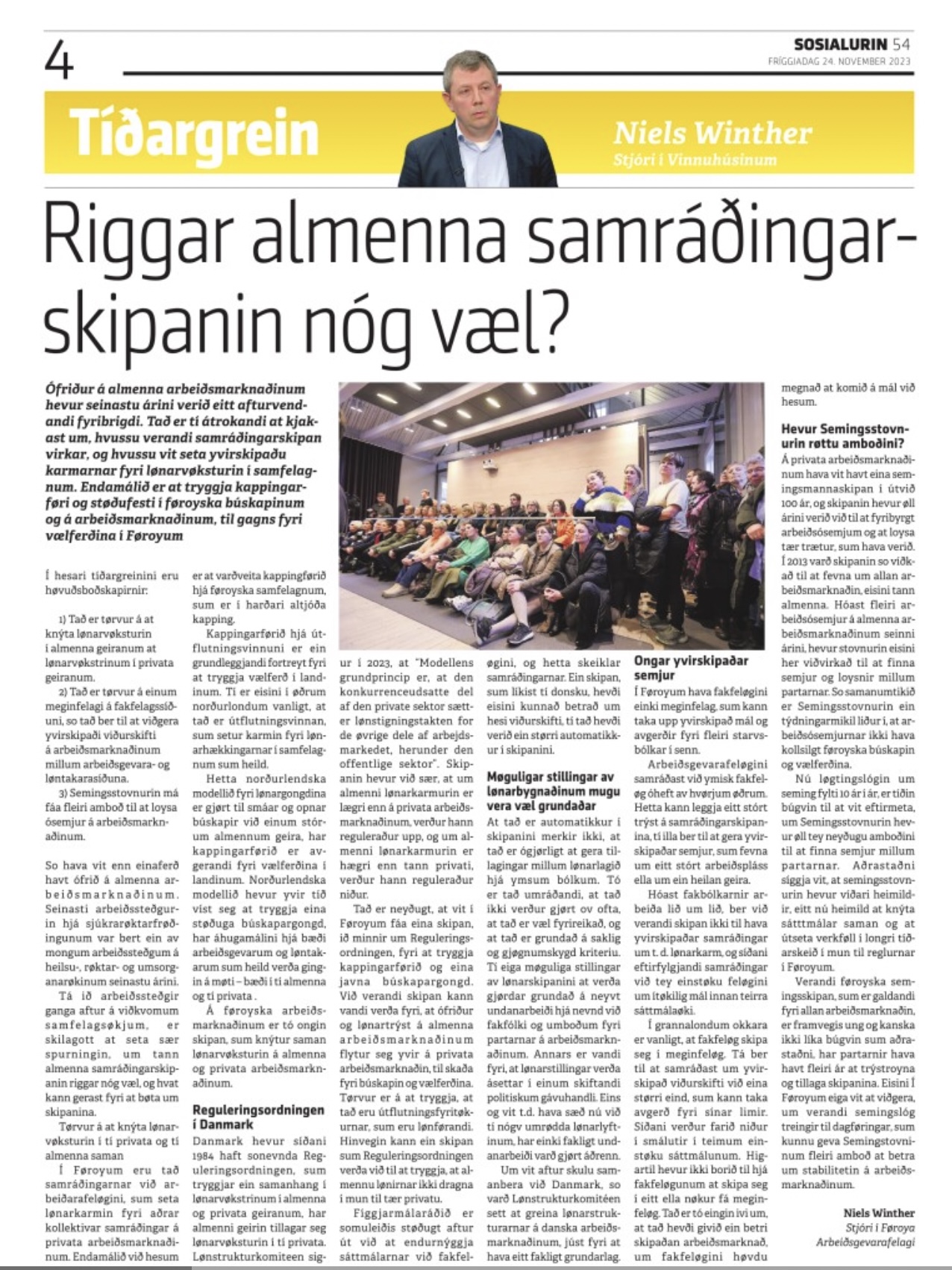 Øll tíðargreinin, ið ber spyrjandi yvirskriftina ”Riggar tann almenna samráðingarskipanin nóg væl?”, kann lesast her.