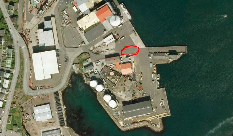 Seðlarnir verða flýggjaðir út við Sjóvinnuhúsið á Vestaru Bryggju á økinum, sum er litað reytt niðanfyri.
