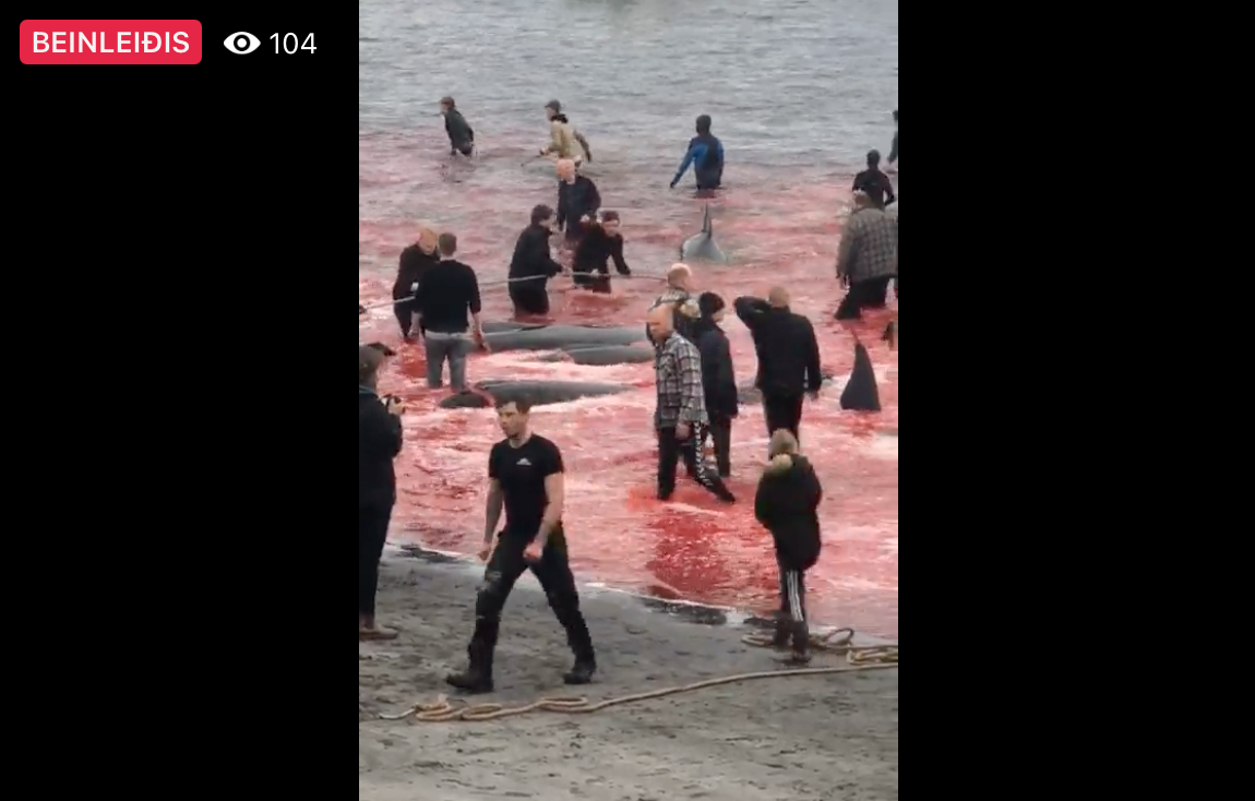 Í løtuni stroymir Sea Shepherd frá grindadrápinum í Sandavági. Sent verður beinleiðis til fólk kring allan heimin umvegis serligan facebook bólk, ið er gjørdur til teirra átak í Føroyum.