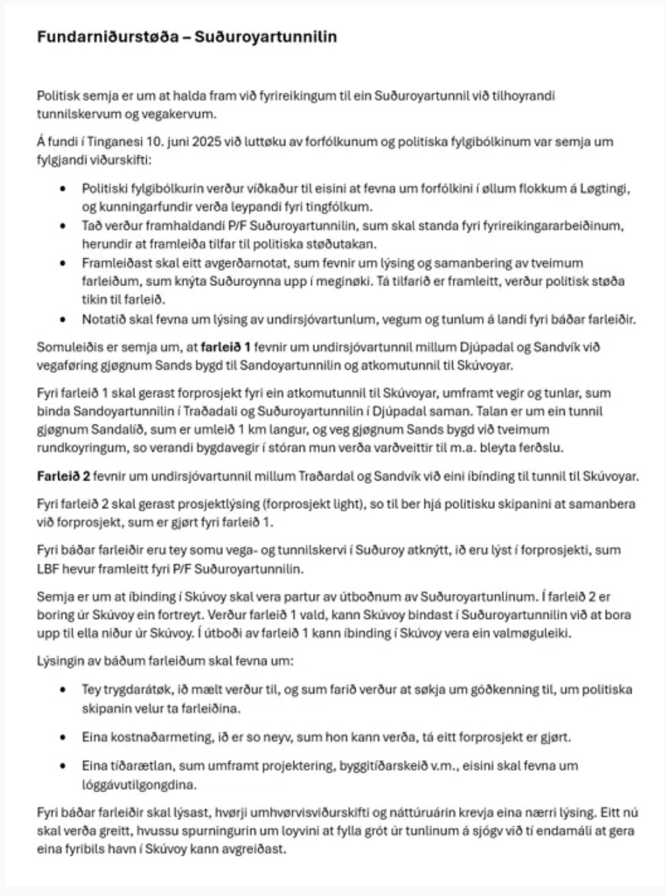 Tann 4. september fekk politiski fylgibólkurin ávegis niðurstøðu um avgerðarnotatið hjá P/F Suðuroyartunlinum og Norconsult.