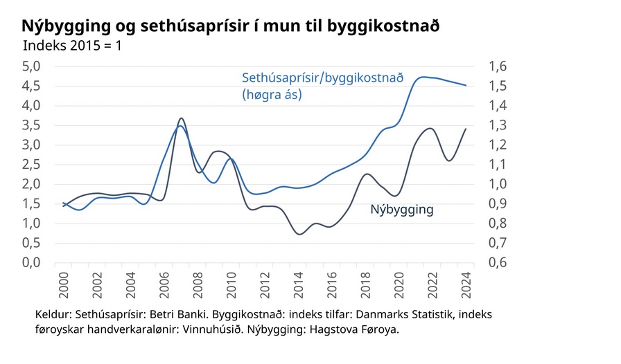 Fleiri bygnaðarliga broytingar kunnu vera orsøk til, at talið av nýbyggingum í hesum tíðarskeiðum ikki hevur fylgt við gongdini í sethúsprísum býtt við byggikostnað.