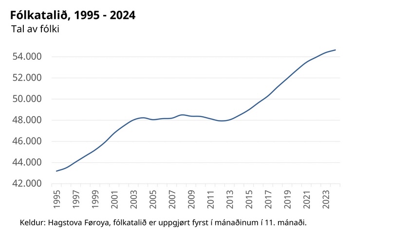 Í árunum 2003 – 2013 var eingin fólkavøkstur, hinvegin er fólkatalið vaksið nærum 13% seinastu 10 árini, sí mynd 2. Skuldi tað verið sama tal av fólki fyri hvørja búeind í dag, sum tað var í 2013, tá ið eingin fólkavøkstur hevði verið í 10 ár, átti tað verið bygt fleiri bústaðir seinastu 10 árini. Sambært Betri Banka, vanta umleið 800 bústaðir, um tað í dag skuldi verið sama lutfall millum tal av fólki og tal av búeindum, sum í 2013.
