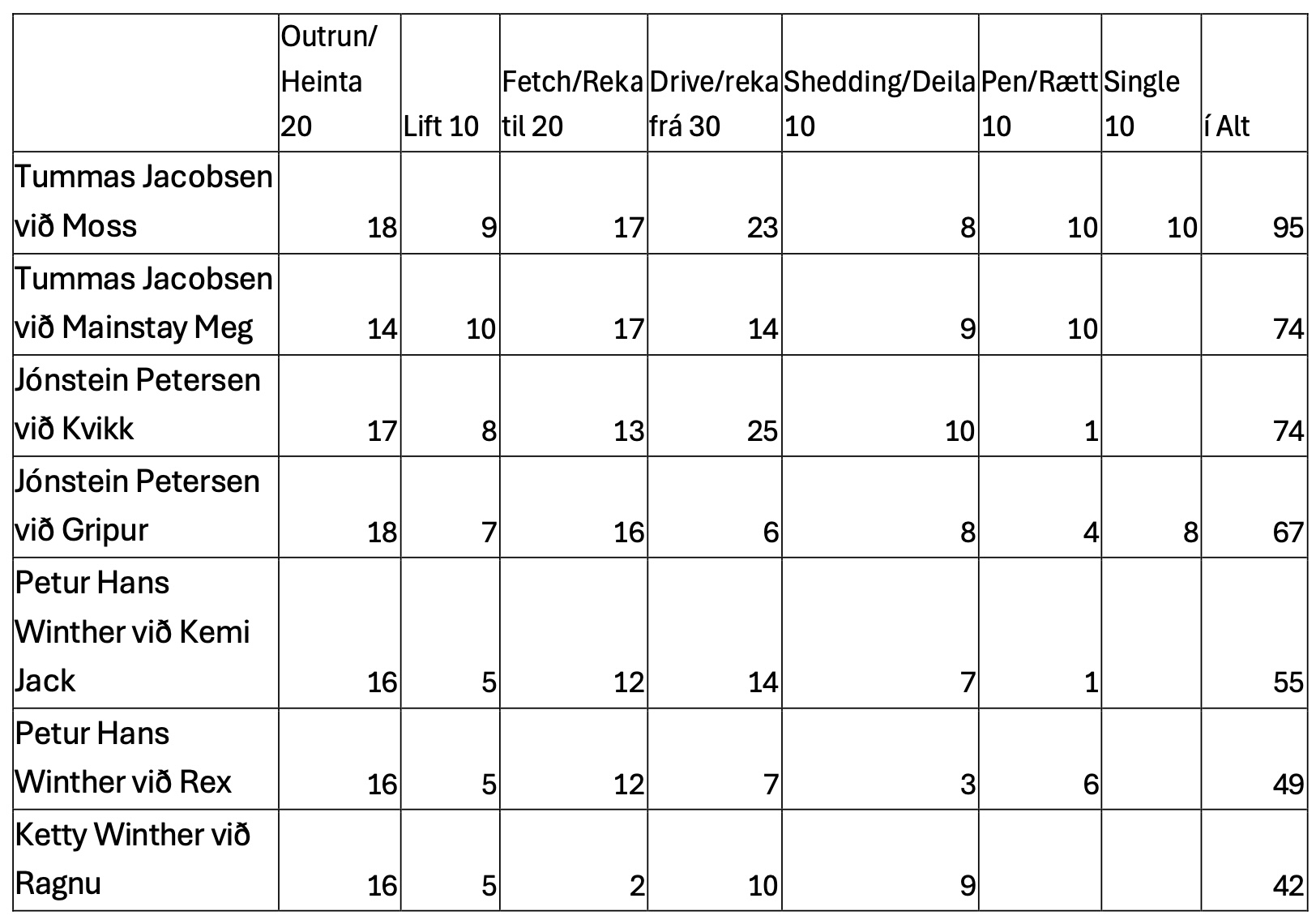 Hesi fingu stig, og tit síggja her hvussu verður dømt. Ein kann í mesta lagi fáa 110 stig.