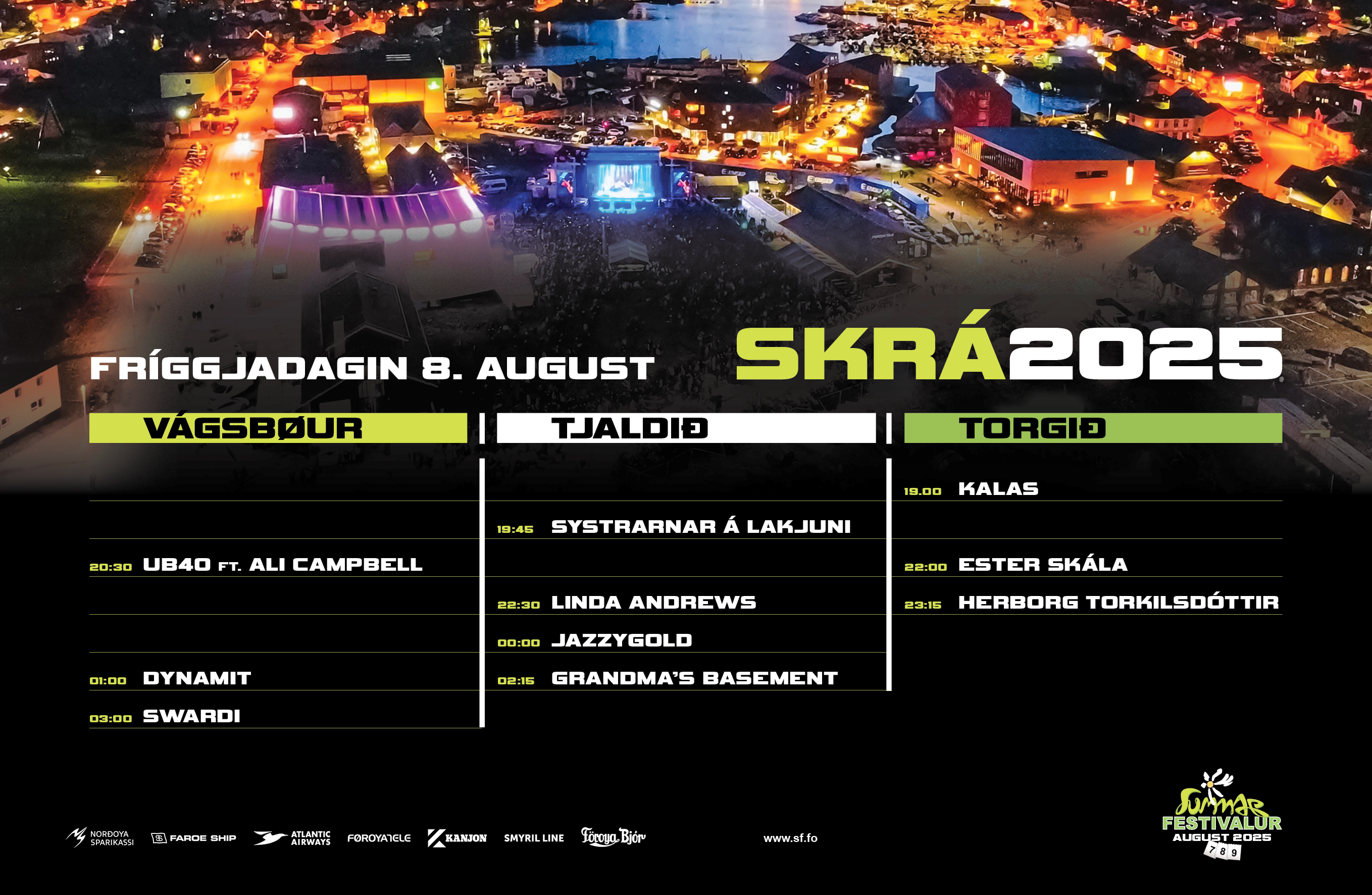 Niðanfyri sæst dagførda skráin fyri Summar Festivalin fríggjakvøldið.