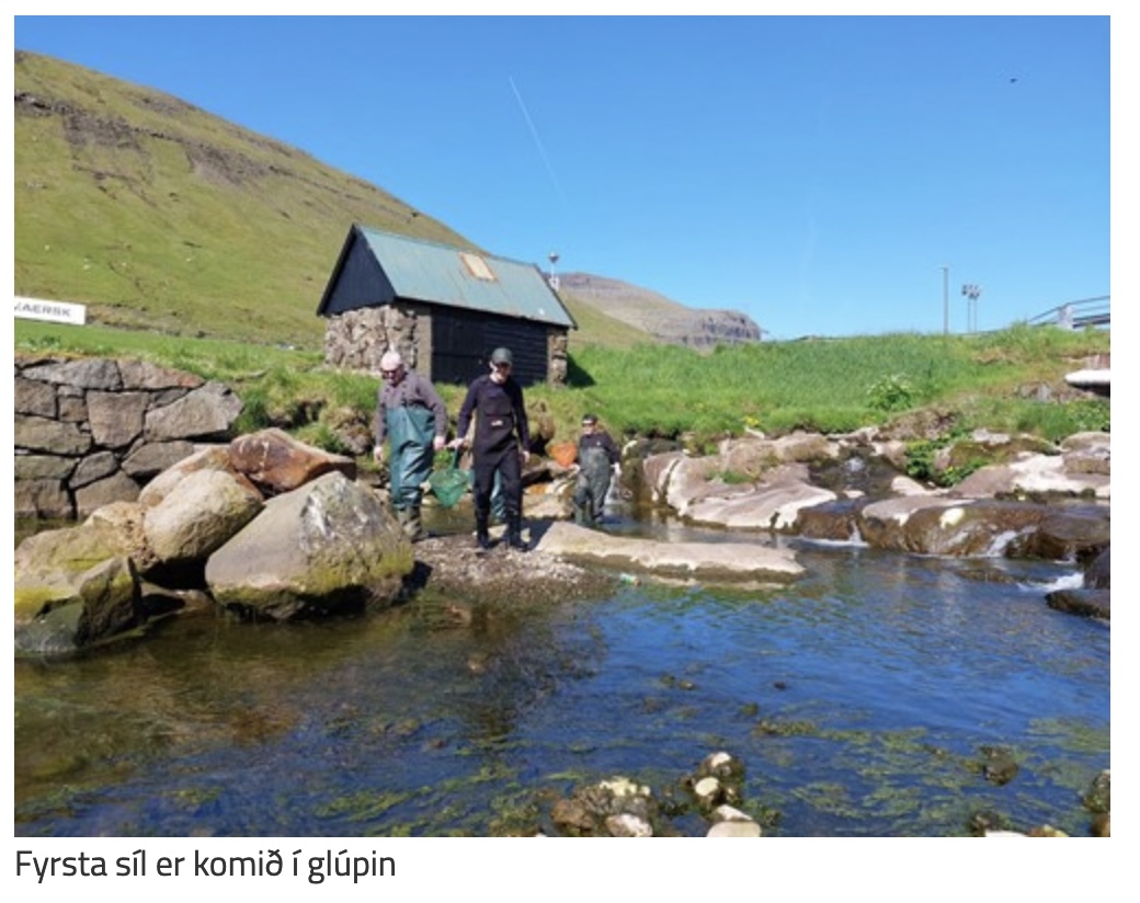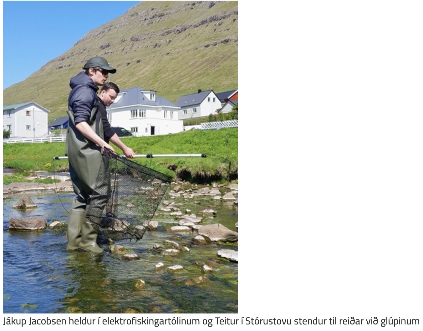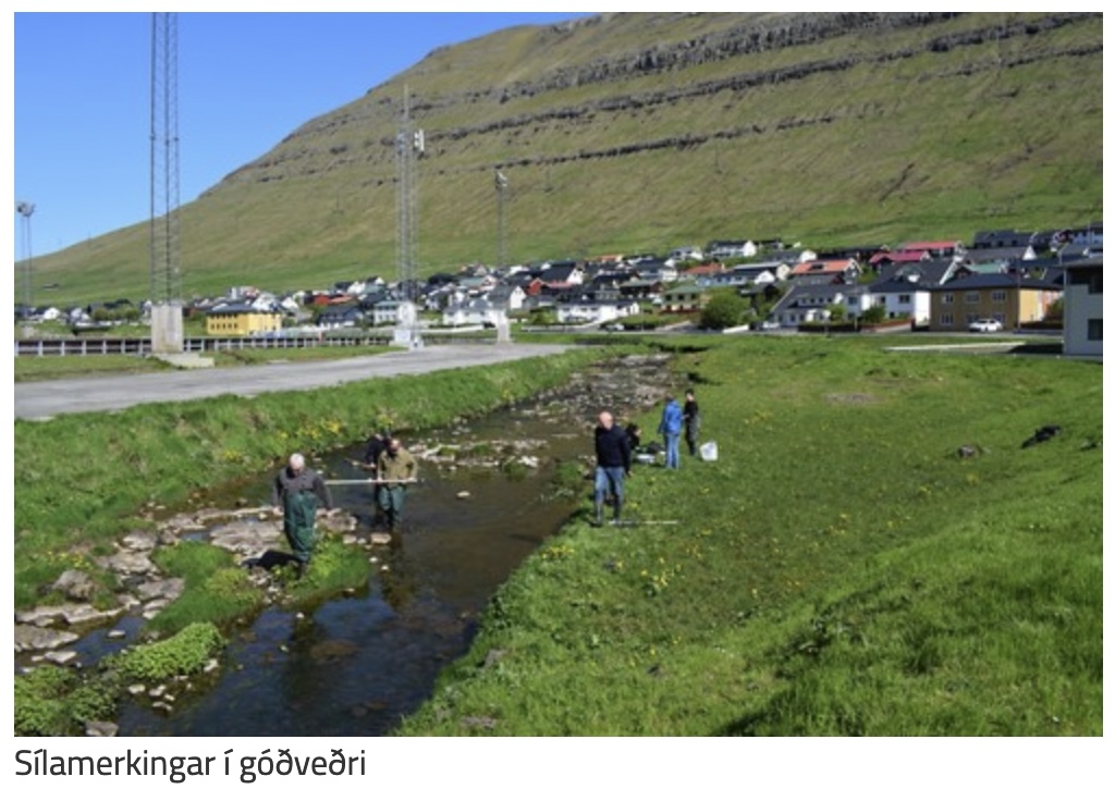 Sum liður í verkætlanini hava starvsfólk frá Fiskaaling verið í ánni í Norðragøtu í dag og í gjár og merkt síl. Í gjár vóru eisini Jón í Haraldsstovu og Óli Petersen frá Sílaveiðufelagnum við í arbeiðinum. Við sær høvdu teir eitt elektrofiskingartól, ið er ogn hjá Sílaveðufelagnum og sum teir lærdu starvsfólkini á Fiskaaling at nýta. Tólið verður nýtt til at fáa fatur á sílunum.