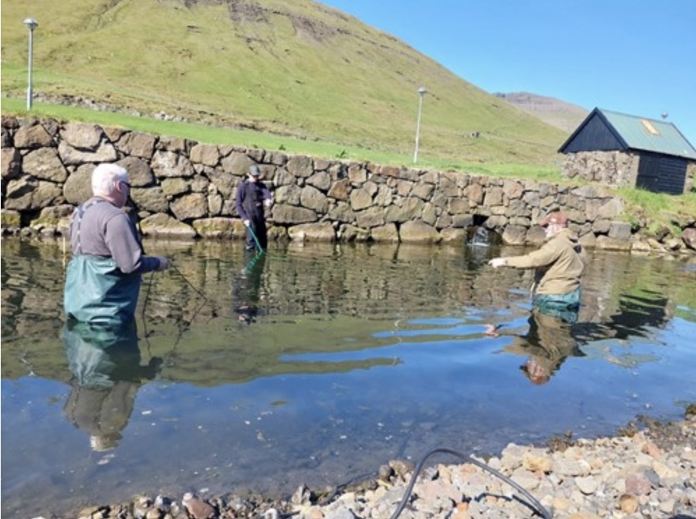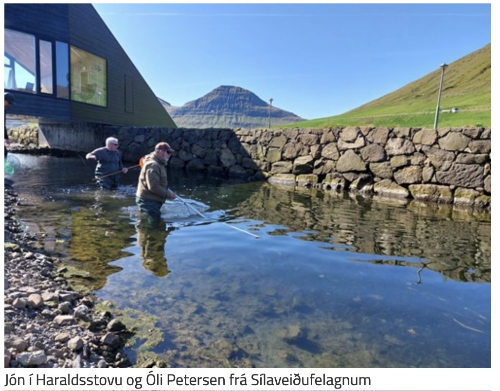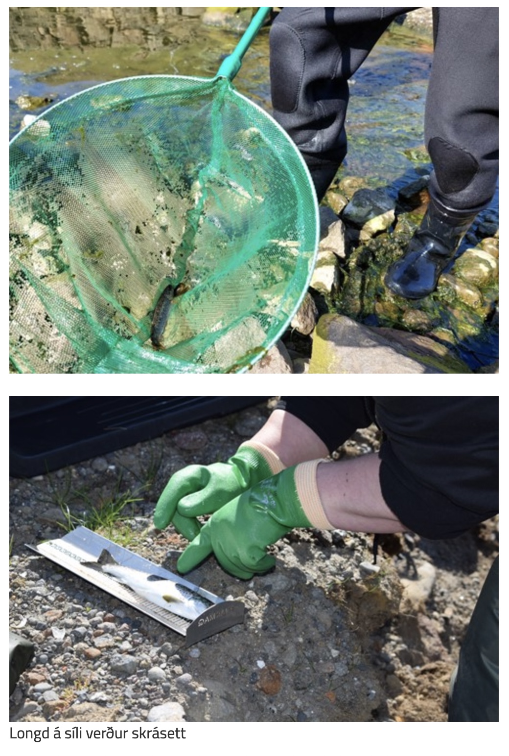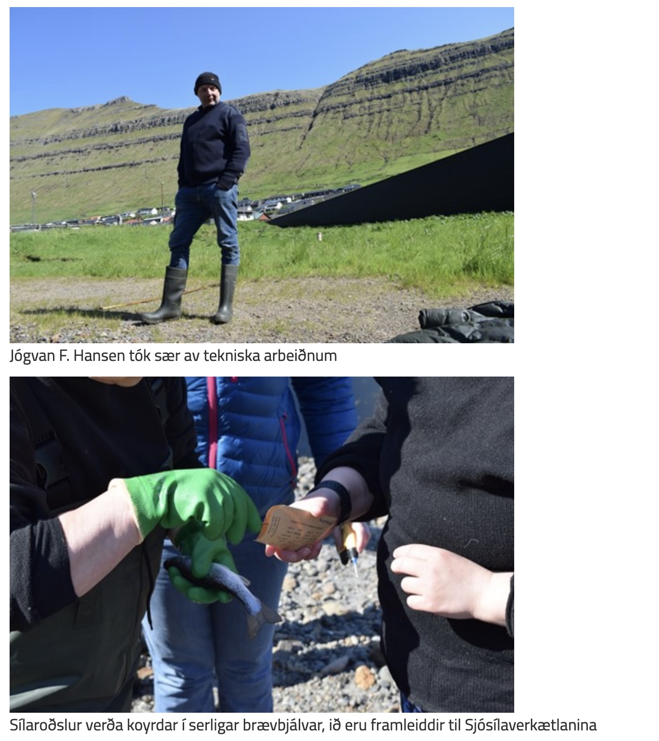 Sum liður í verkætlanini hava starvsfólk frá Fiskaaling verið í ánni í Norðragøtu í dag og í gjár og merkt síl. Í gjár vóru eisini Jón í Haraldsstovu og Óli Petersen frá Sílaveiðufelagnum við í arbeiðinum. Við sær høvdu teir eitt elektrofiskingartól, ið er ogn hjá Sílaveðufelagnum og sum teir lærdu starvsfólkini á Fiskaaling at nýta. Tólið verður nýtt til at fáa fatur á sílunum.