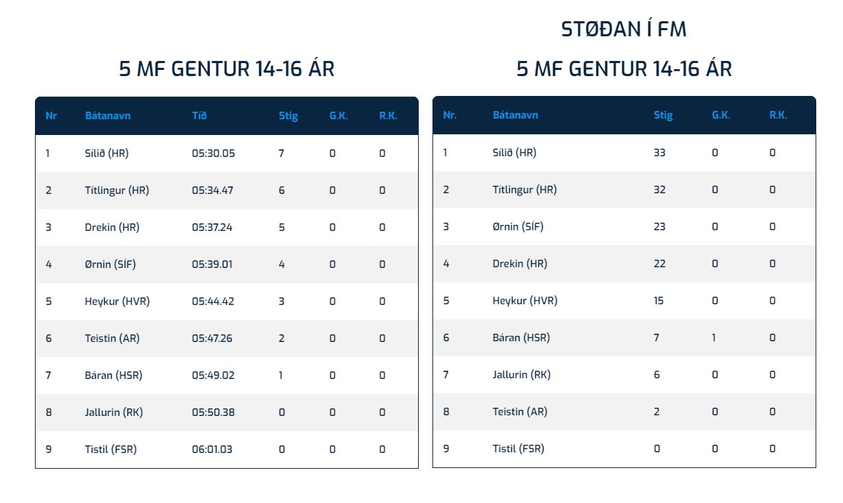 Aftur í dag vóru tað hesir tríggir bátarnir, sum vunnu heiðursmerkini. Broytingin í dag sammett við fyri einari viku síðani í Fuglafirði var, at í dag var tað Sílið, sum vann, meðan Títlingur endaði á øðrum plássi.