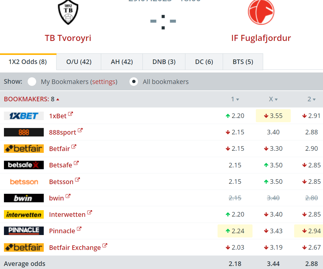 Oddsini upp á ein sigur til TB liggja millum 2,03 og 2,24.
