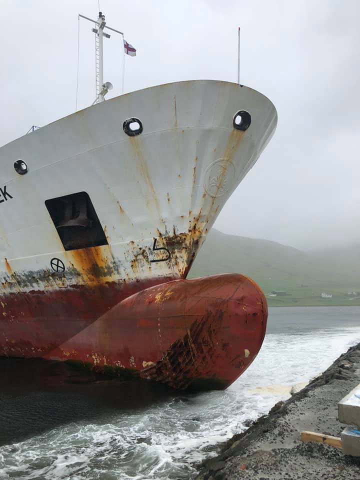 Sum skilst var skipið í fer við at venda, tá tað rendi seg á land og setti seg fast.