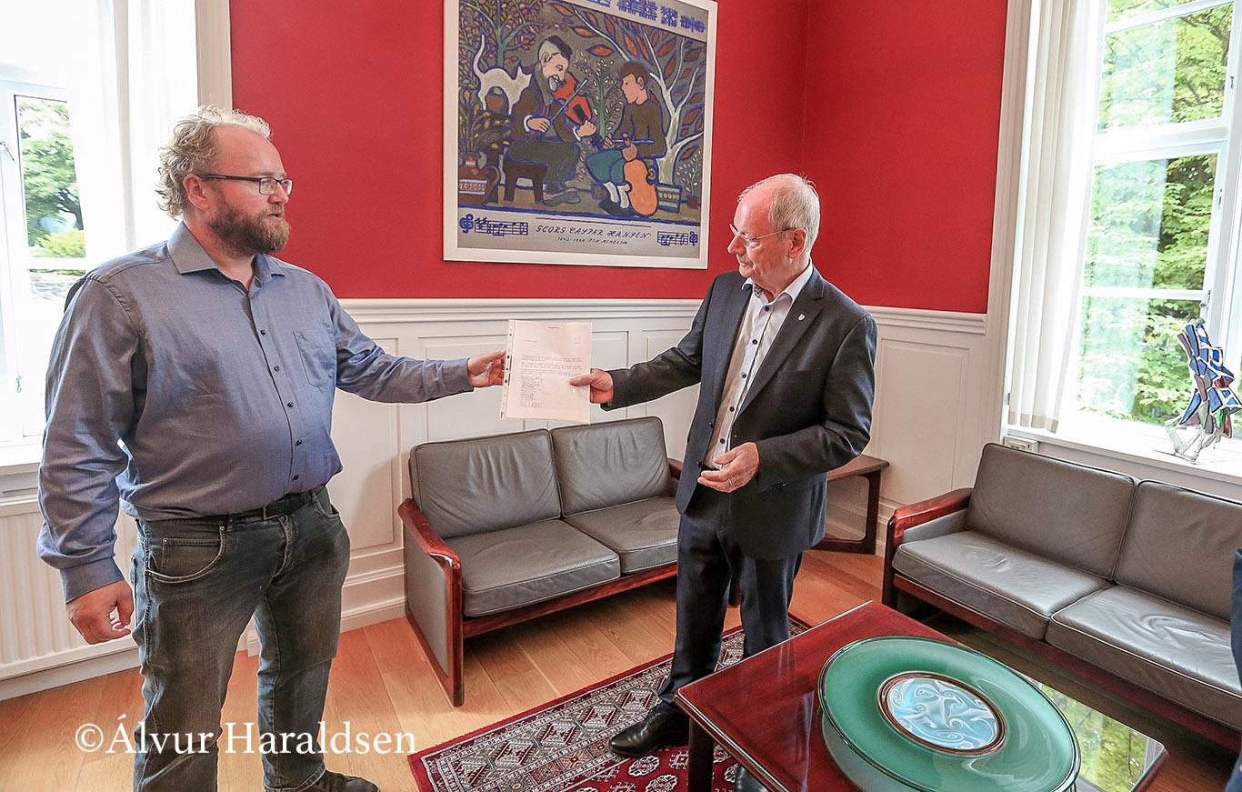 Tað var Janus Vang, sum vegna Áhugafelagið við Kaldbaksfjørð handaði borgarstjóranum í Tórshavnar kommunu, Heðini Mortensen, mótmælisskrivið.