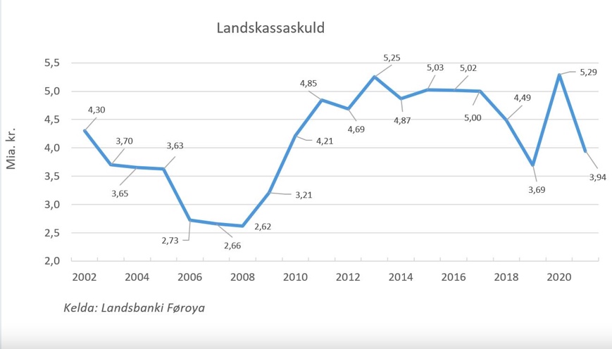 Í juni í fjør tók landskassin eitt lán upp á 1,6 milliardir fyri at fíggja leggja upp fyri einum halli á fíggjarlógini í kjalarvørrinum á koronu. Tá var væntandi, at hallið á fíggjarlógini fór at vera 1,1 milliard í fjør og í ár var væntandi, at hallið fór at vera 500 milliónir. Men gongdin hevur tó víst seg at vera nógv betri enn mett var fyri einum góðum árið síðani, tí hallið á fíggjarlógini í fjør var ikki meiri enn 298 milliónir og fíggjarlógin í ár vísur eitt hall á 355 milliónir.