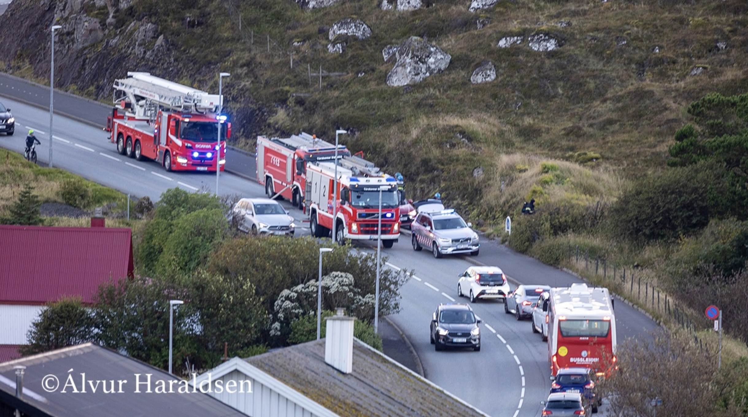 Fleiri sløkkiliðsbilar vóru á stðanum, sum myndirnar vísa.