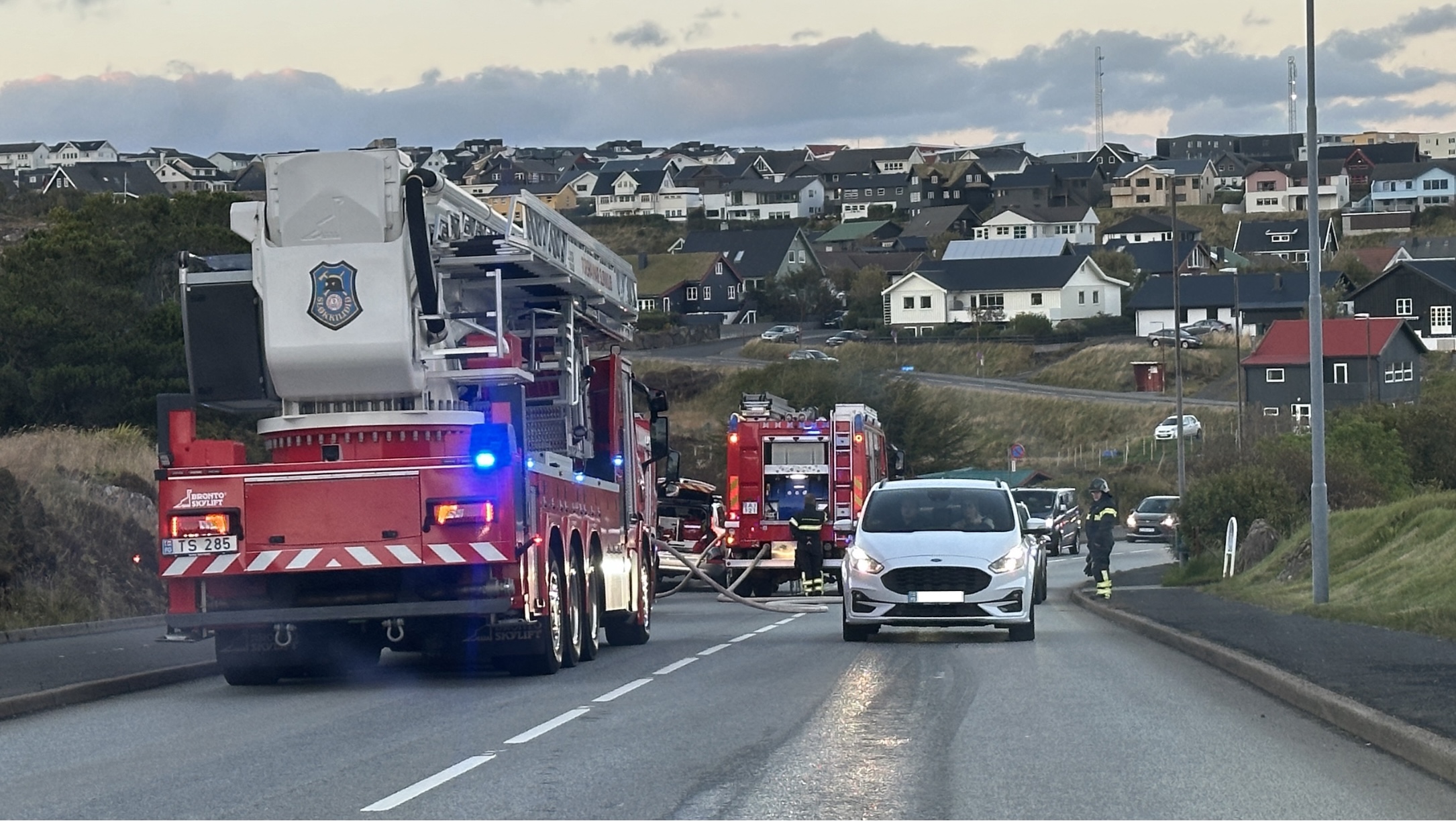 Vakthavandi á politistøðini sigur, at talan var um smávegis eld, men at tamarhald var skjótt á støðuni, uttan at hann visti meira um málið, tí fólkini hjá teimum framvegis vóru á staðnum.