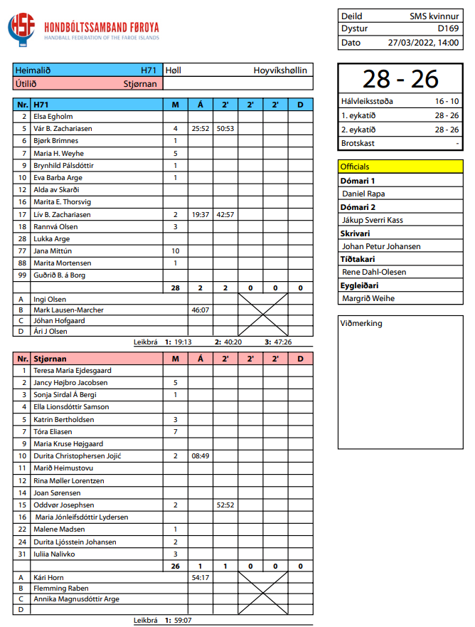 Seinna FM-hálvfinalan í SMS-deildini millum H71 og Stjørnuna var leikt í Hoyvíkshøllini fyrr í dag.