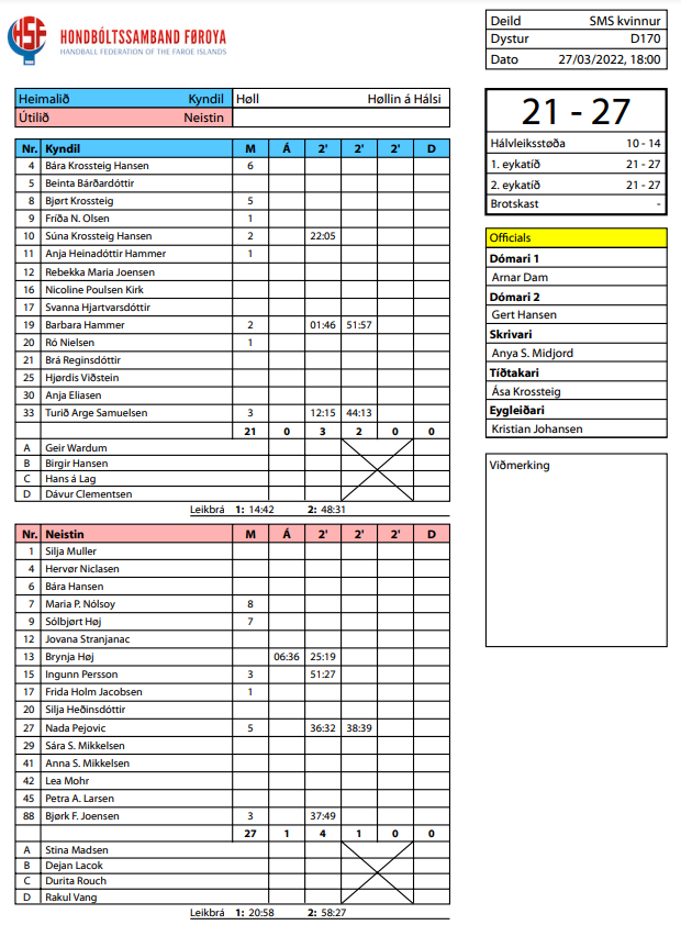 Kyndil-Neistin 21-27 (10-14) - Neistin vinnur FM-hálvfinaluuppgerðirnar 2-0.