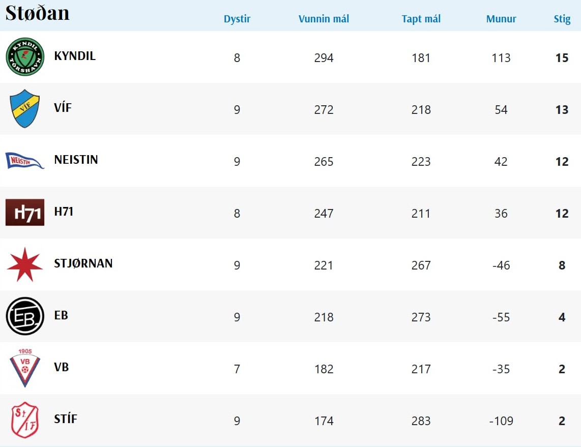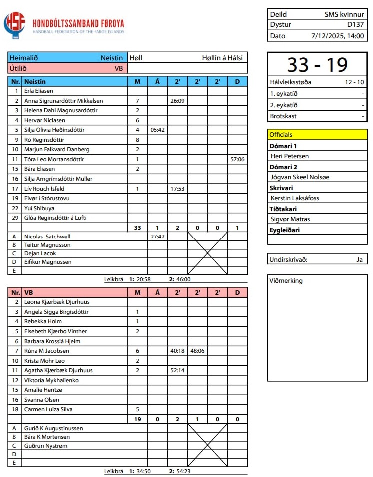 HER ber til frá HSF at síggja dómaraseðilin frá dagsins dysti, og støðuna í SMS-deildini: