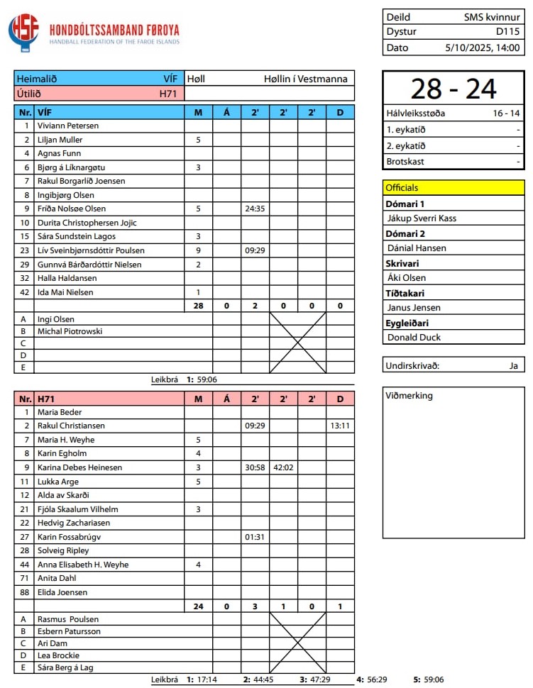 Lív Sveinbjørnsdóttir Poulsen var við níggju málum toppskjútti hjá VÍF. Lukka Arge og Maria H. Weyhe vóru við fimm málum hvør toppskjúttar hjá H71.