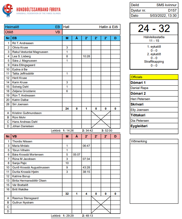 EB-VB 24-32 (11-15) - Stigatalvan sæst undir dómaraseðlinum hjá HSF:
