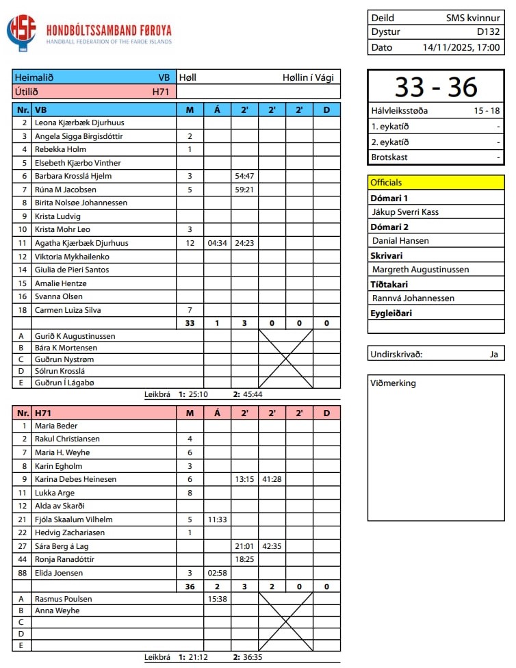 HER ber til frá HSF at síggja dómaraseðilin frá dystinum suðuri í Vági: