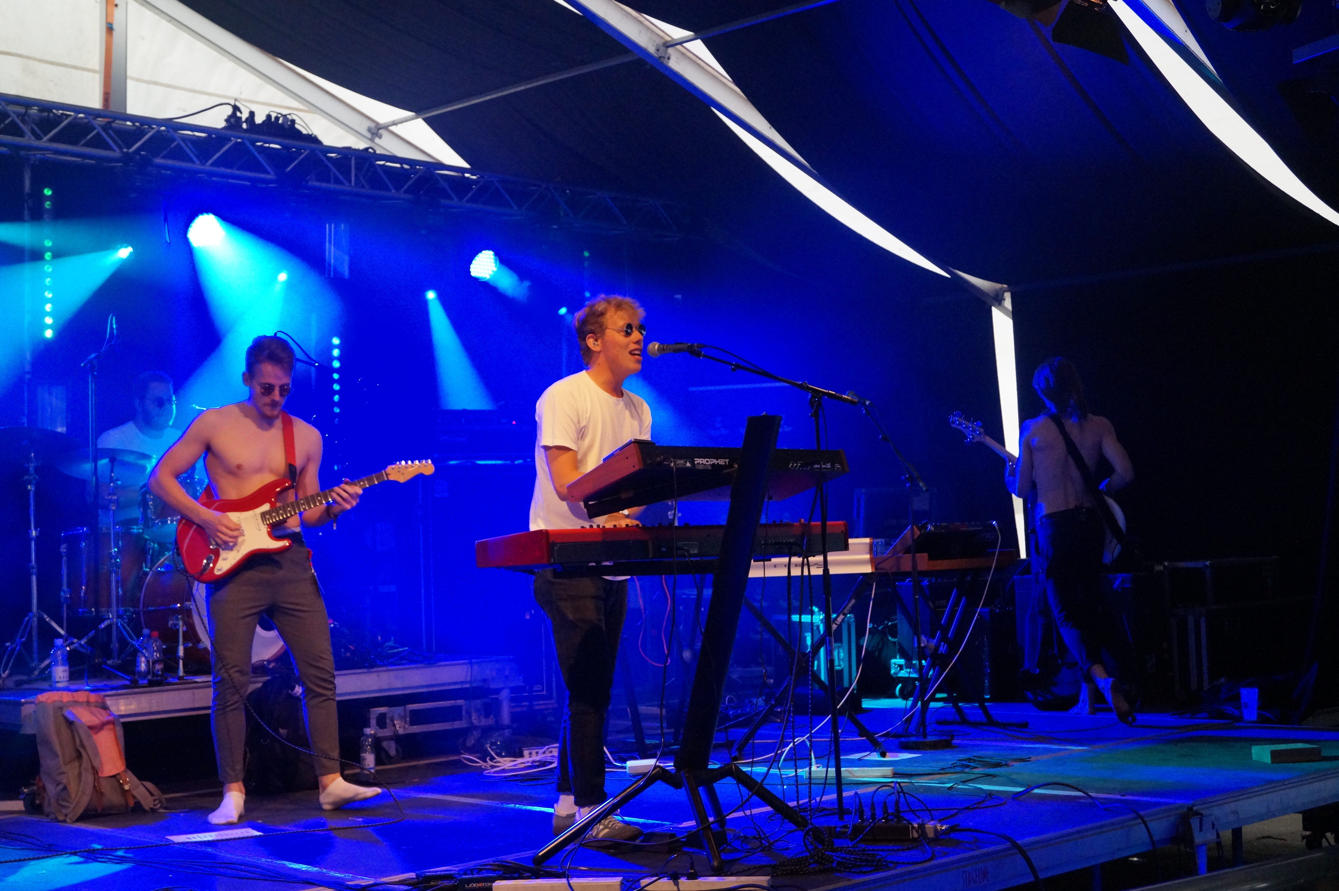 Niðri á Vágsbøi er framvegis friður, nøkur tandur síggjast her og har, men fleiri hava lagt sær leiðina niðan í tjaldið, har Mark the Messenger byrjaði festivaldagin kl. 16 við góðum poppi.