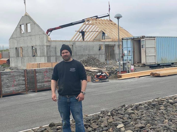 Tað er Niels Johannes Tjaldrastein, timburmeistari á Sandi, sum hjálpir Jens Mariusi Stovugarð og Martu Torfríð Hentze við byggingini, og tað eru fleiri, sum rætta eina hjálpandi hond - júst, soleiðis, sum tað eigur at vera úti á bygd.