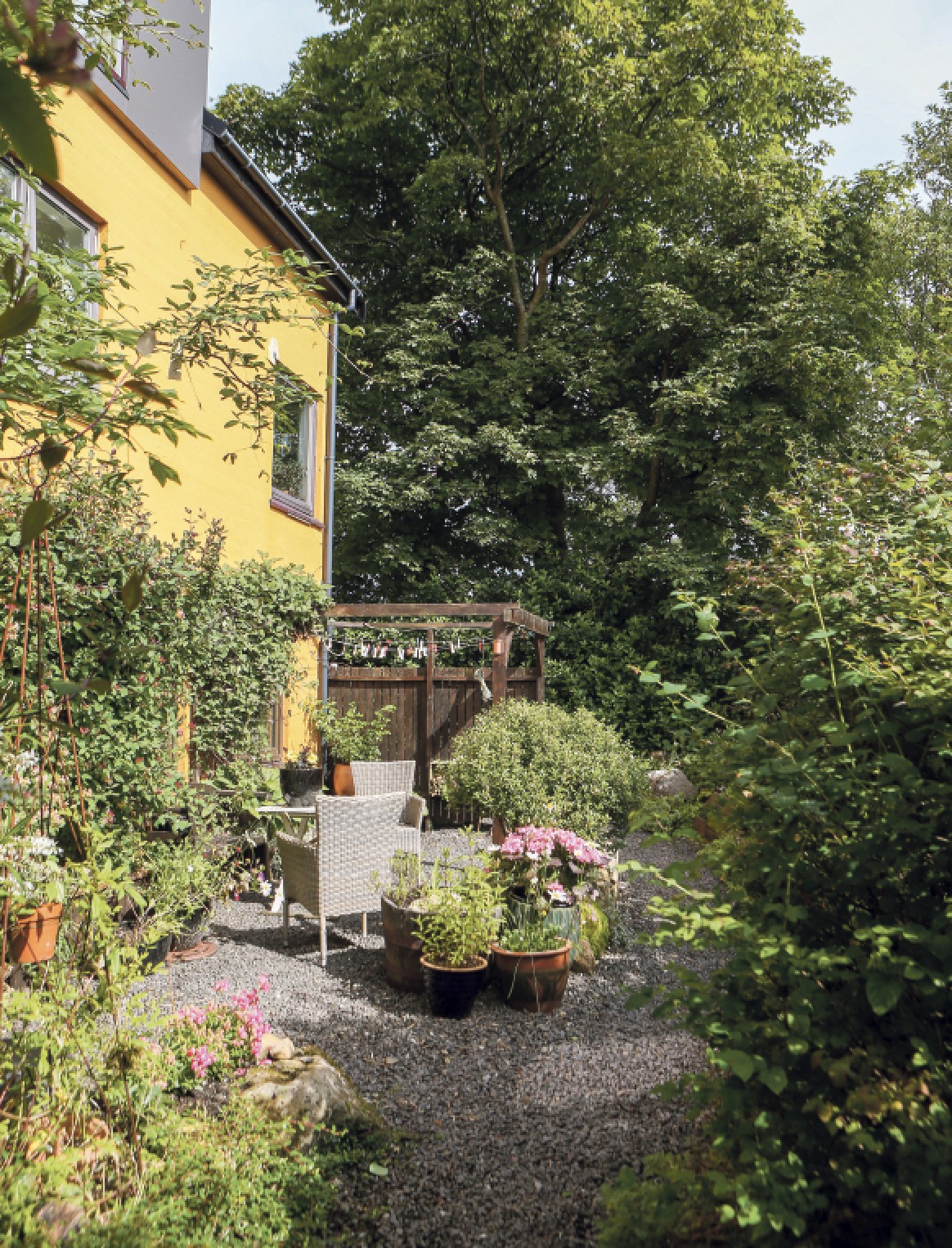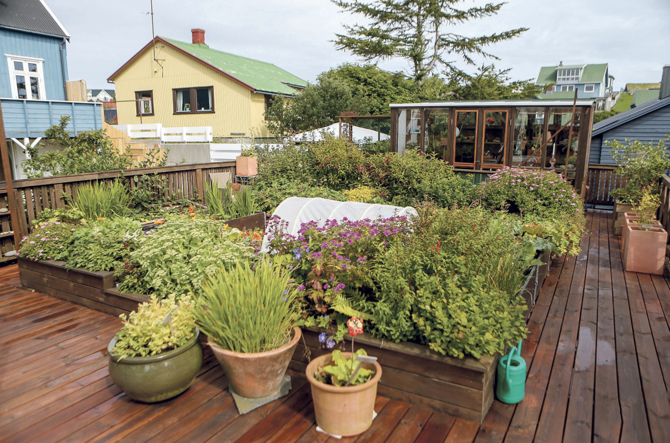 Tá tey fluttu í húsini var alt bøur oman á betongdekkinum, so um summarið var tað sum at koma í hagan, tí grasið var so sítt, men um tey høvdu sligið tað, hevði tað kanska verið ein grasplena. Tey vildu ikki hava gras, so tey beindu tað burtur og fóru í gongd við at planta.
