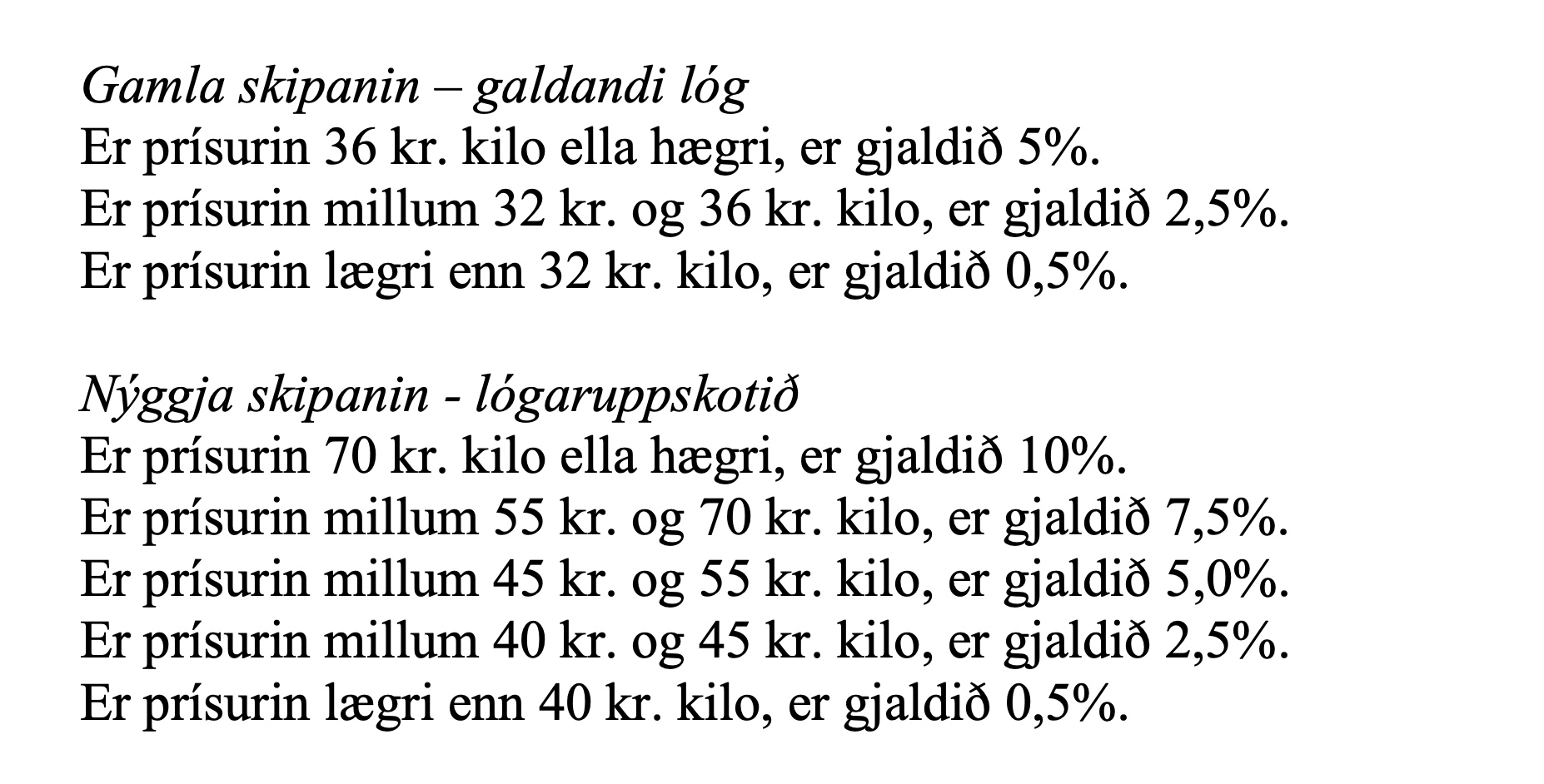 Men kortini er niðurstøðan í samgonguni, at avgjøldini hjá alivinnuni til landskassan skulu hækkast, og nú fer samgongan at leggja uppskot fyri Løgtingið um tað. Í hesum sambandi er uppskotið nú lagt fyri avvarðandi partar til ummælis