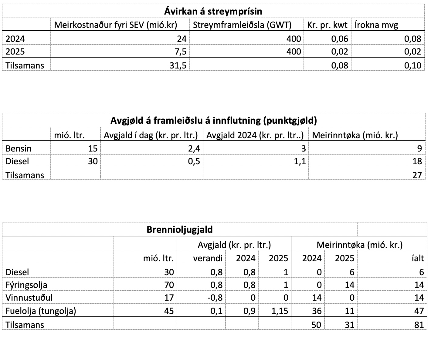 Í metingini av ávirkanini á streymprísin, verður roknað við, at SEV brúkar 30 mió. l. av tungolju um árið.