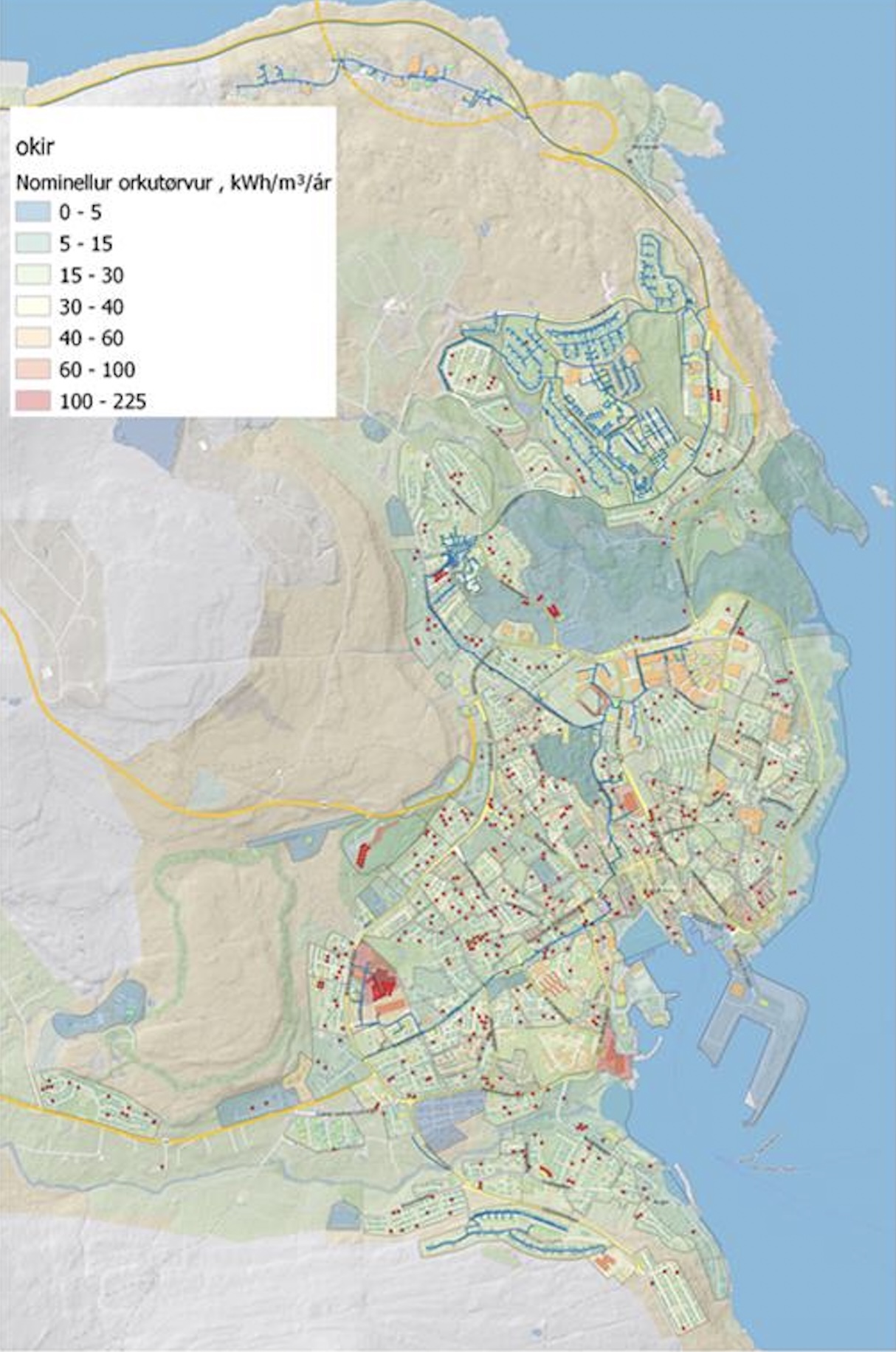 Alt hetta kemur fram í einum hitaatlassi, sum er eitt savn av kortum og ein orðað ætlan fyri, hvussu eitt bygt øki sum Tórshavnar kommuna kann hitast upp, tá oljufýringarnar verða útskiftar.