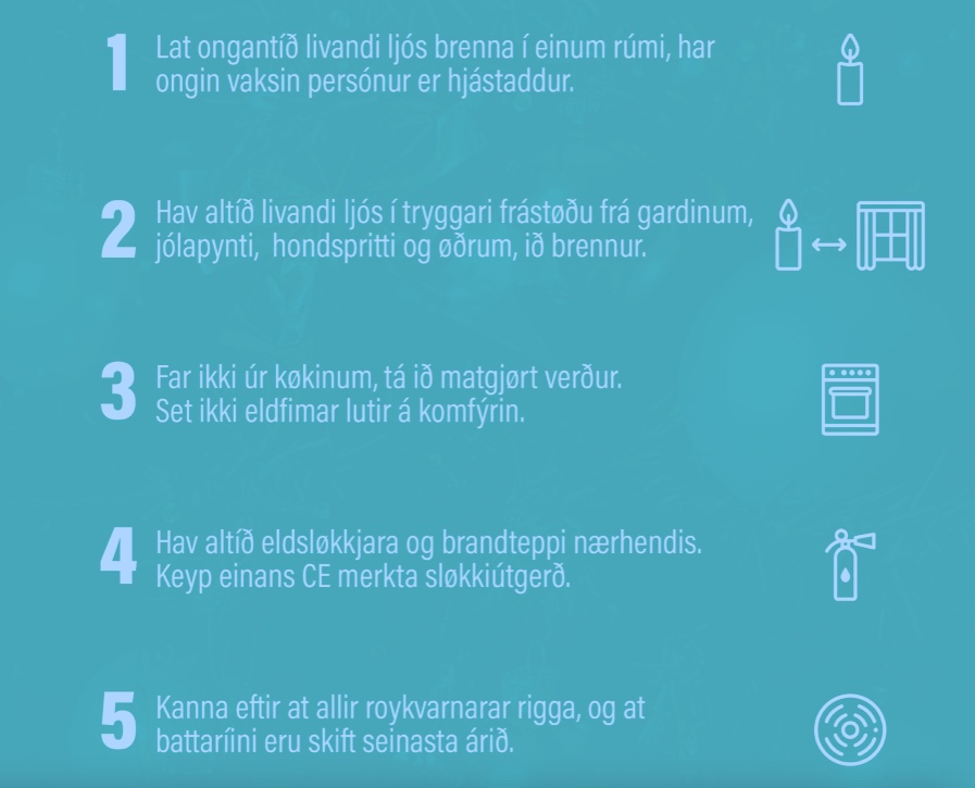Her eru annars tey fimm, góðu ráðini um, hvussu vit kunnu fyribyrgja, at eldur kemur í.