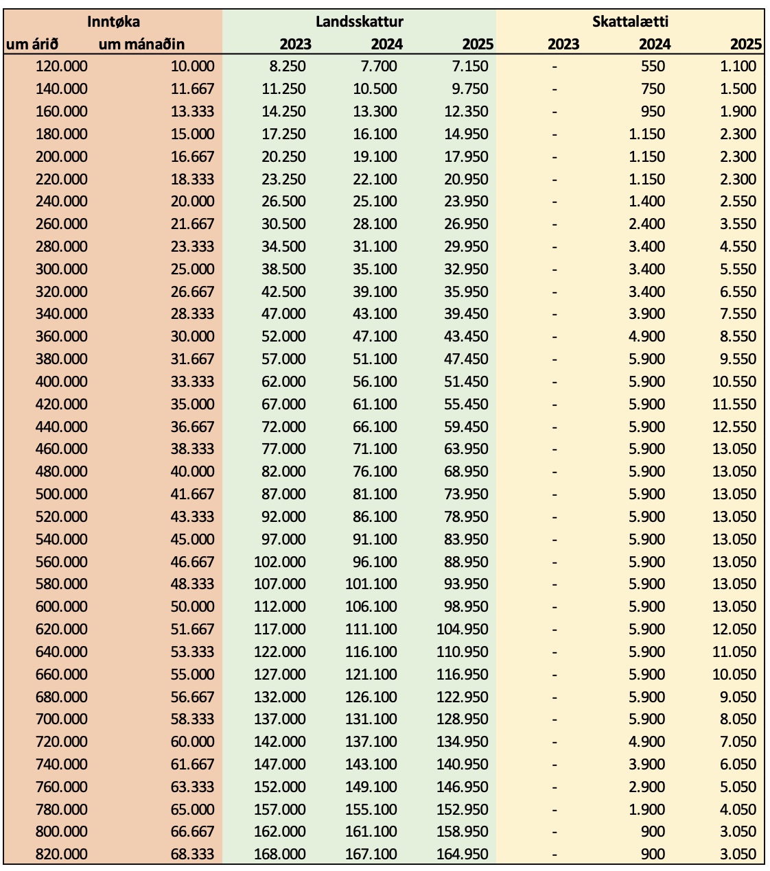 Inntøkur millum 460.000 og 600.000 fáa mesta skattalættan, sum er 13.050 krónur um árið.