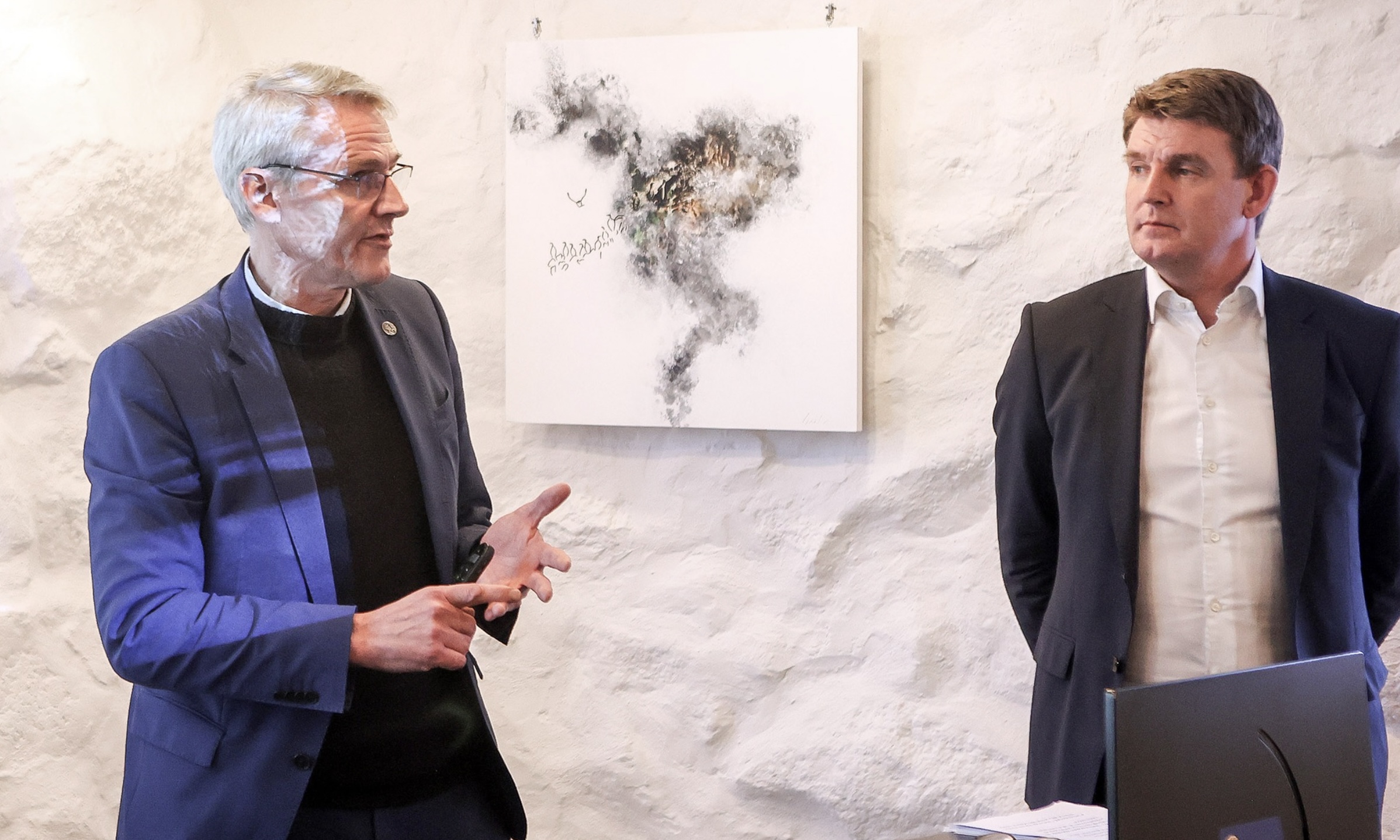 Hesum greiddu tey trý forfólkini í samgonguflokkunum, Aksel V. Johannesen, løgmaður, Ruth Vang, landsstýriskvinna í fíggjarmálum, og Høgni Hoydal, landsstýrismaður í vinnumálum, frá á tíðindafundi í Tinganesi fríggjadagin.
