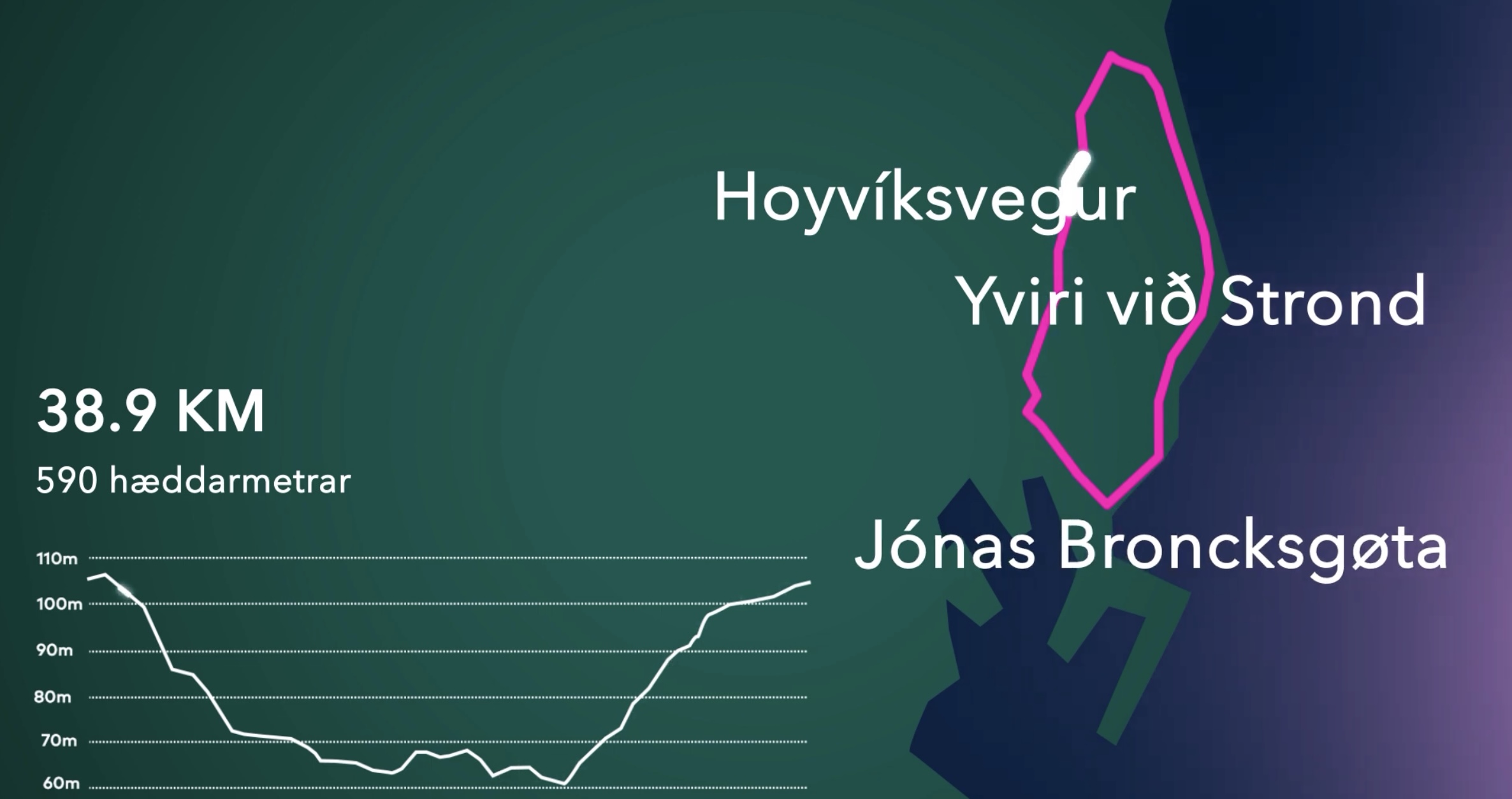 Byrjað verður hjá Leif Mohr á Hálsi. Rutan er Hoyvíksvegur – Yviri við Strond – Jónas Broncksgøta – Hoyvíksvegur. Hesin teinur er smáar 4 km til longdar og hevur 59 hæddarmetrar. Teinurin verður koyrdur tíggju ferðir.