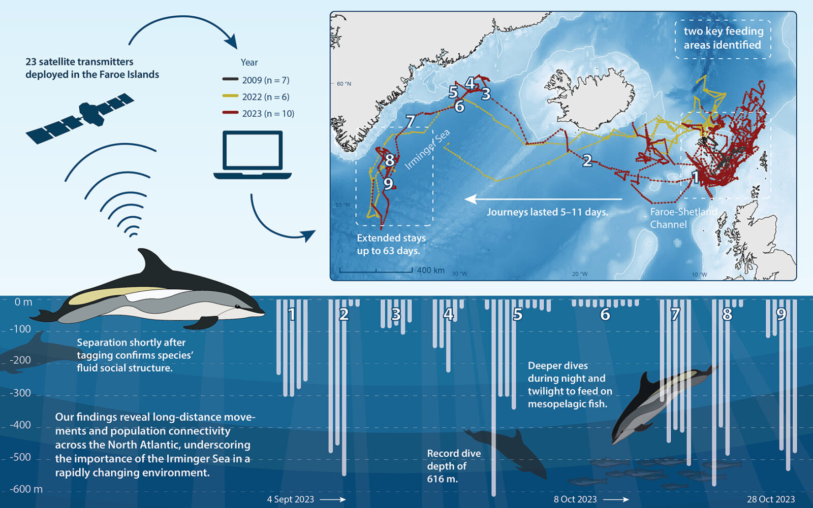 Hetta er fyrstu ferð, at slík trans-Atlantisk ferðing er ávíst fyri springarar. Greinin gevur týdningarmikla vitan, sum er fyritreyt fyri burðardyggari umsiting av springarastovninum í einum Norðuratlantshavi, sum er merkt av verðurlagsárini.