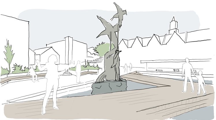 Býarskipanardeildin hjá Tórshavnar kommunu hevur samráðst við EYA Arkitektar og myndhøggaran, Hans Paula Olsen, um verkætlanina. Føroya grótvirki og Articon útføra arbeiðið.