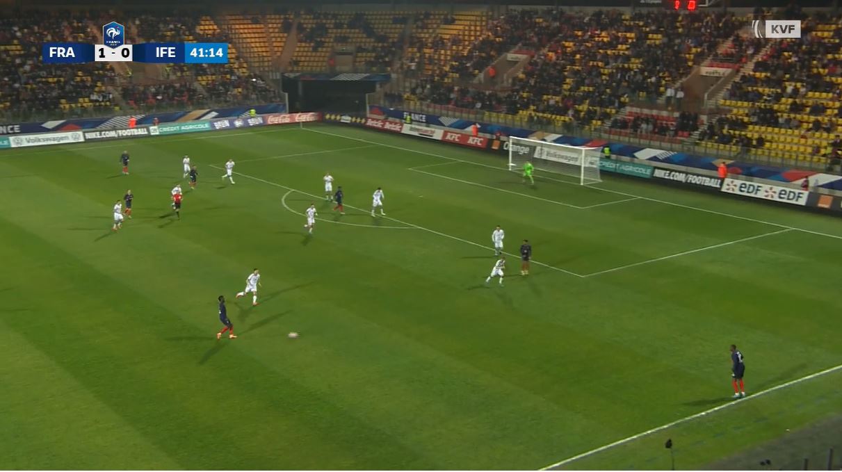 Tá ið tað restaðu átta minuttir var annar av føroysku miðverjunum, Áki Johannesen, óheppin at gera sjálvmál eftir flatt franskt innlegg úr høgru og so var 2-0. Áki Johannesen var annars ein brandur í miðverjuni. Bæði tá ið hann var saman við Børga Petersen, sum noyddist skaddur av vøllinum, tá ið ein lítil hálvur tími var farin, og tá ið hann var saman við avloysaranum Elias Rusborg, sum dagliga umboðar danska felagið Hvidovre IF.