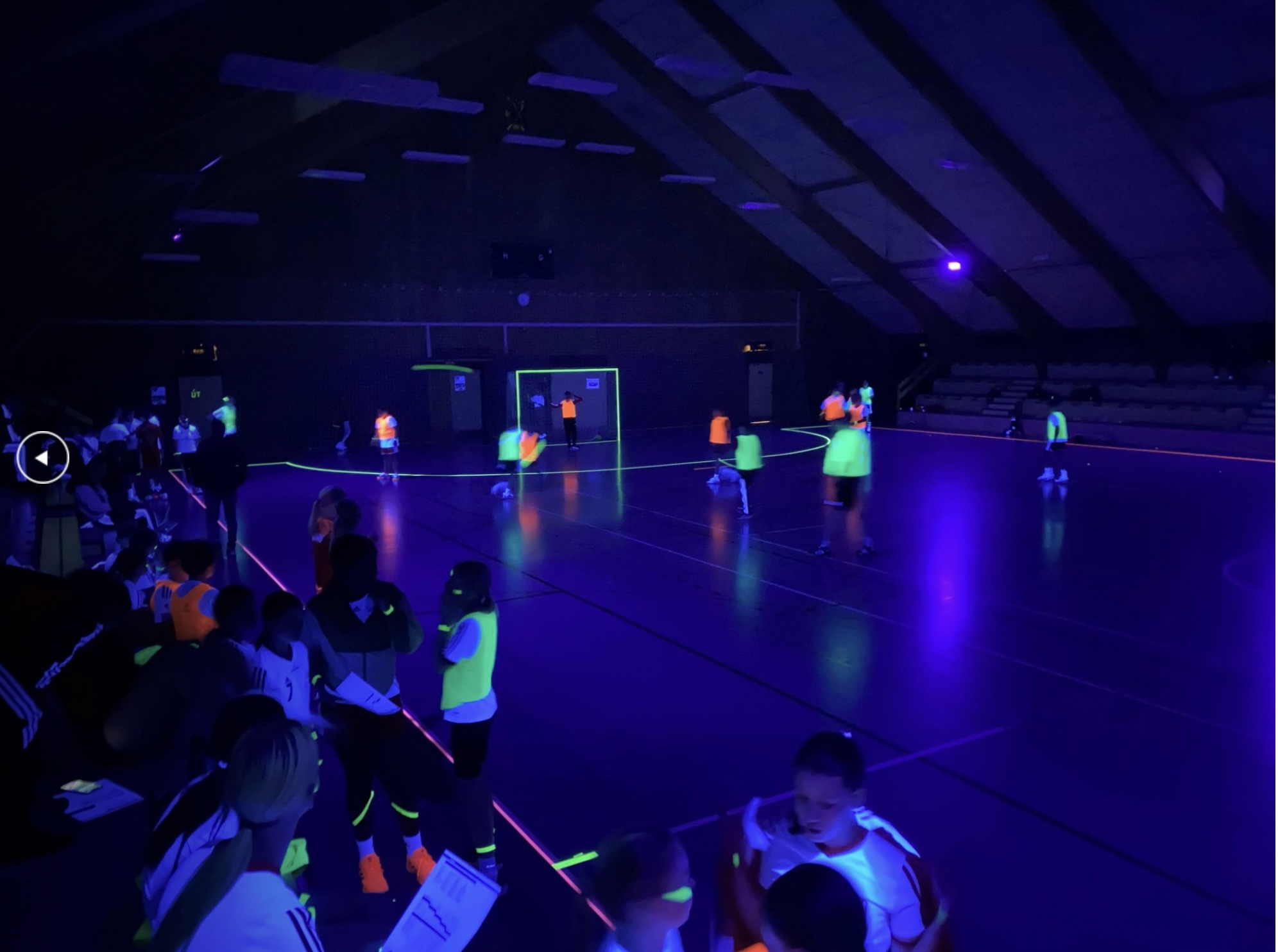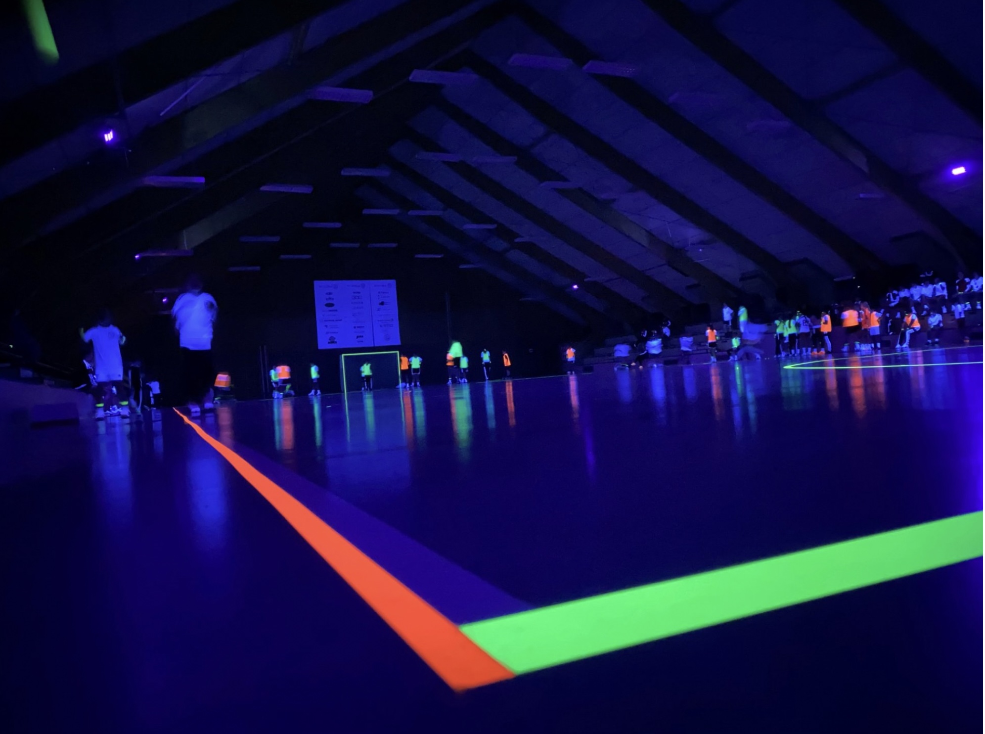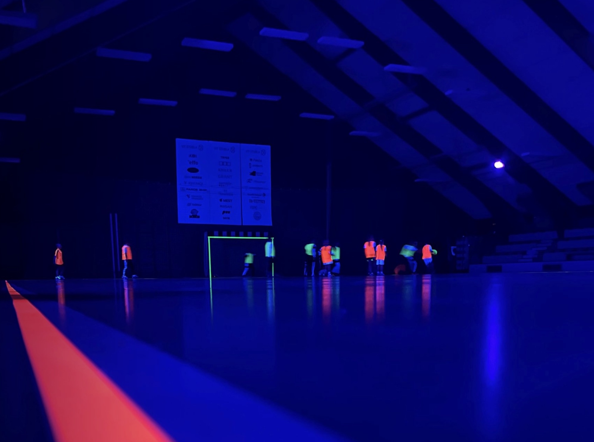 Høllin bleiv sløkt og ultraviolett (UV)-ljós fingu bólt, mál, strikur og leikarar til at lýsa. Ein festligur máti at spæla hondbólt og at enda hetta kappingarárið við. Børn, ung og vaksin hugnaðu sær saman.