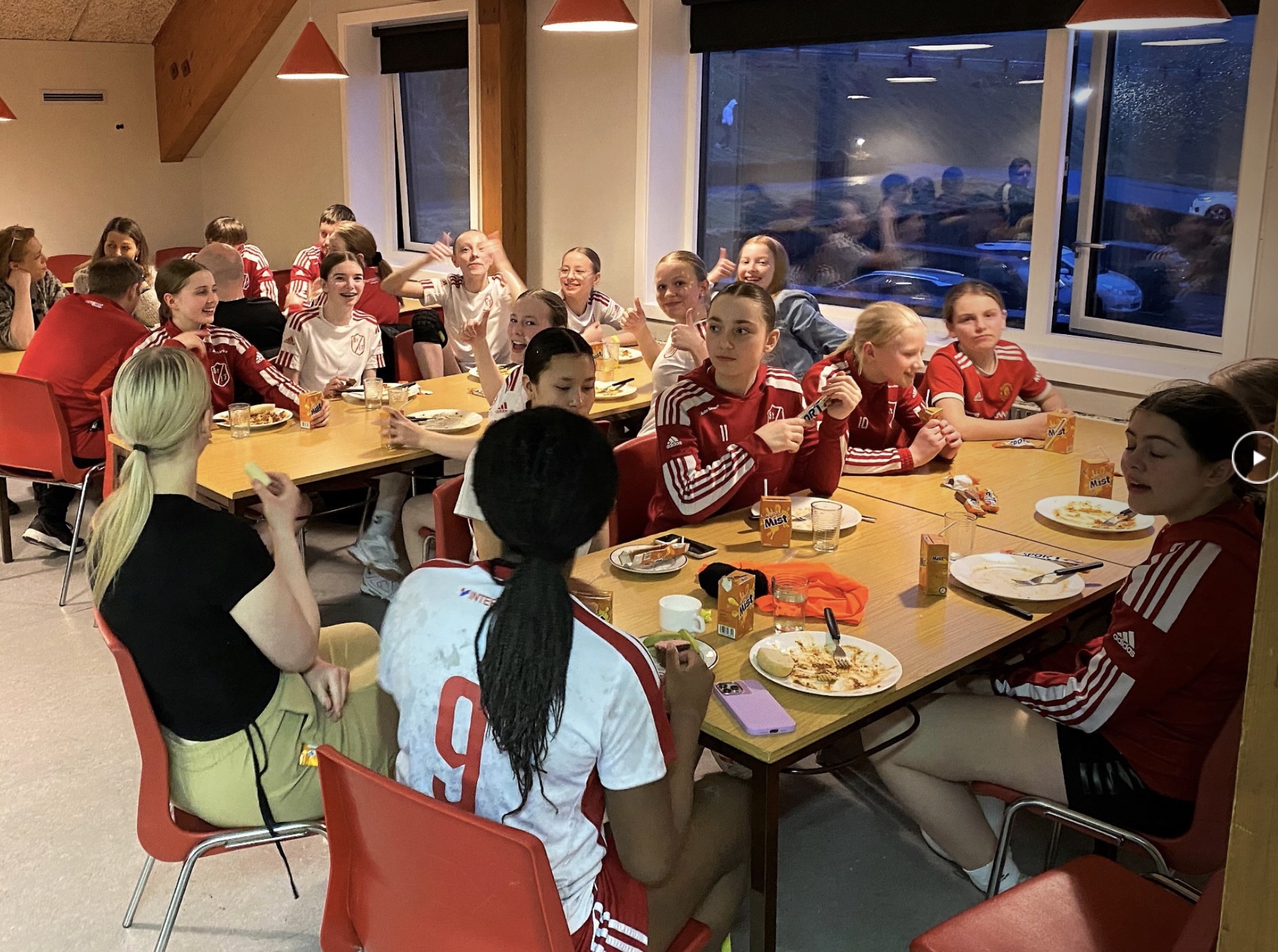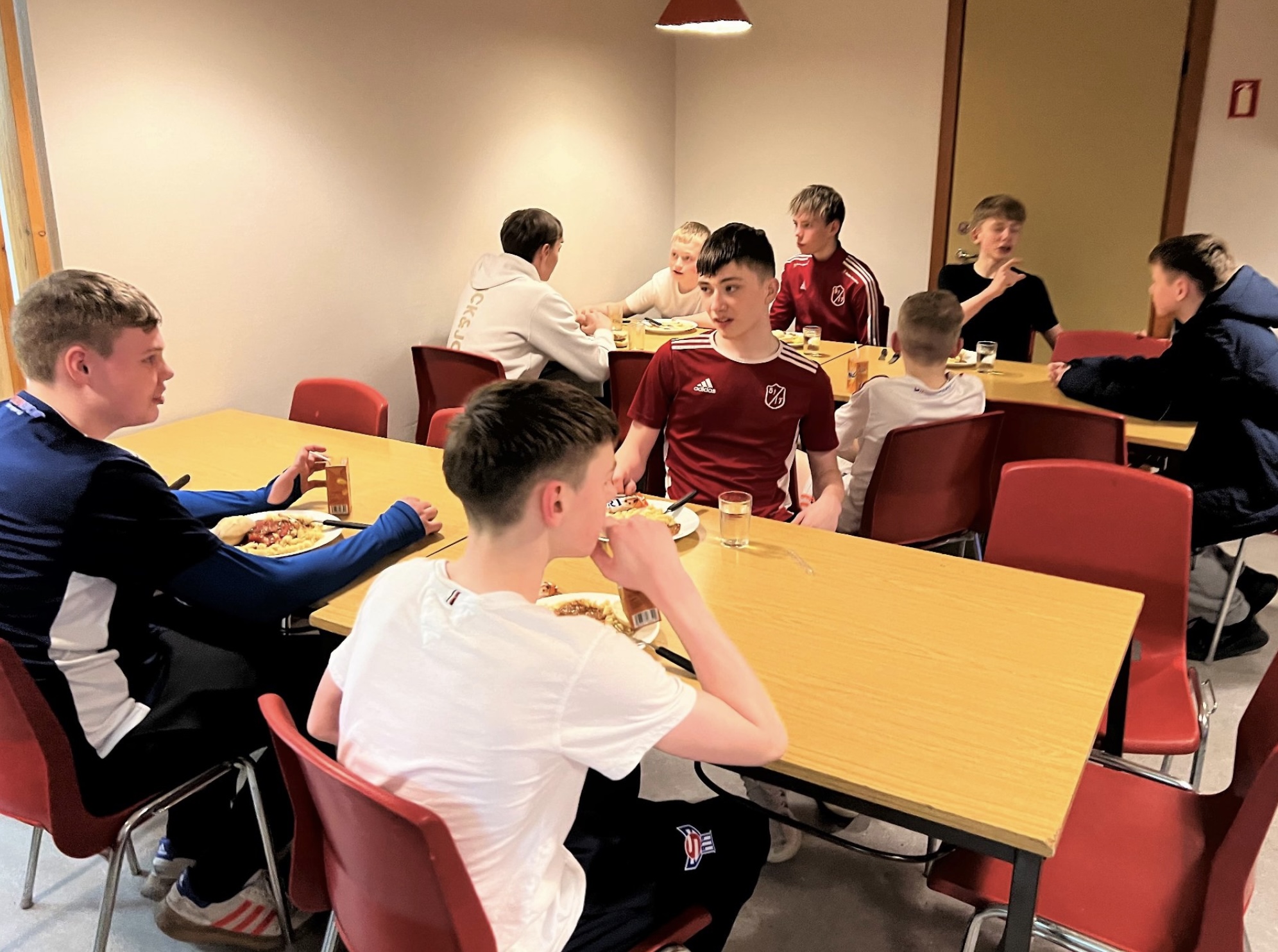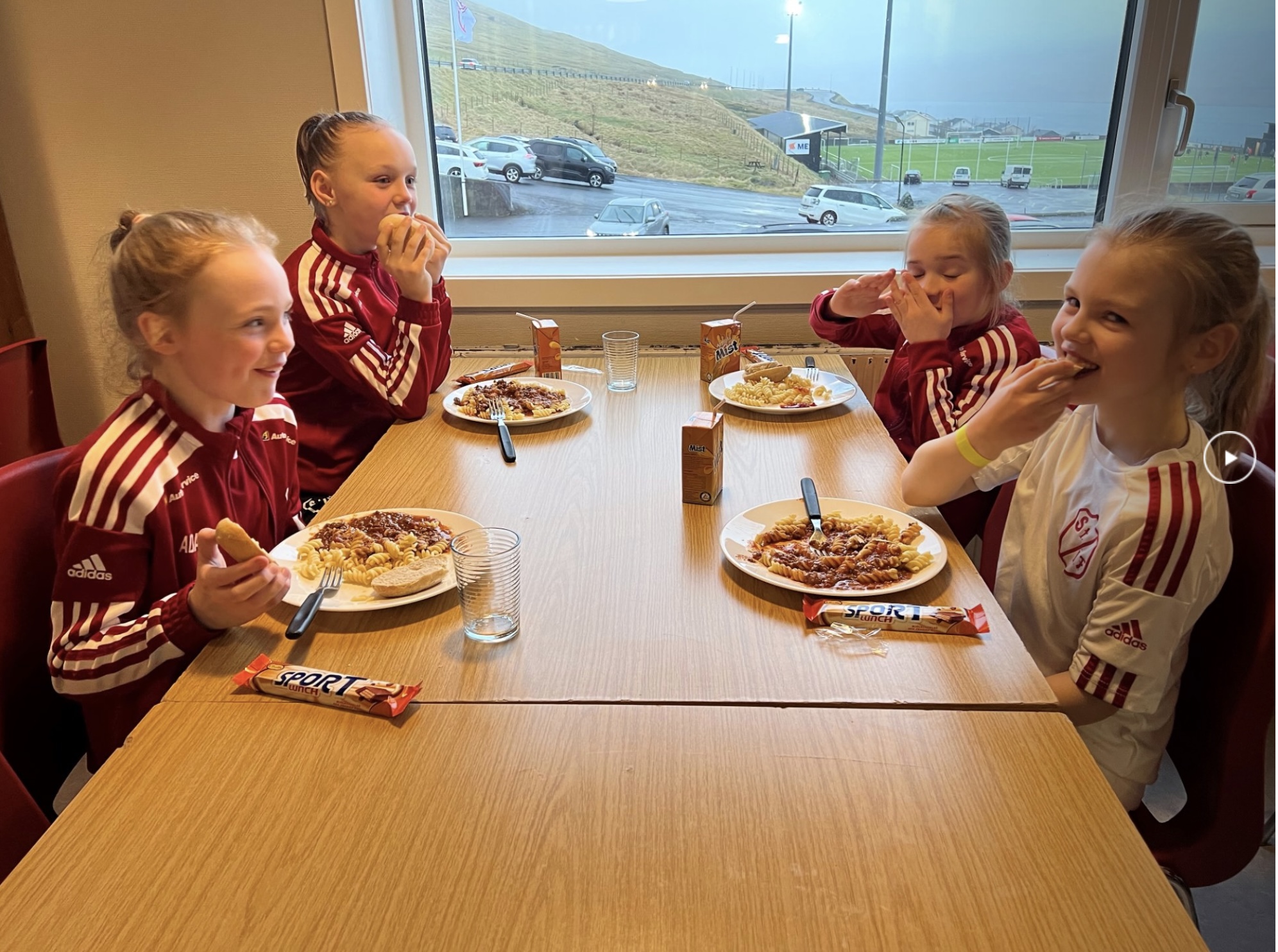 Aldursbólkarnir fingu døgurða í kaféteriuni, tá tey vóru liðug at spæla. Foreldrini í ymisku árgangunum skipaðu hetta sera væl og ruddaðu og vaskaðu upp eftir hvønn árgang.