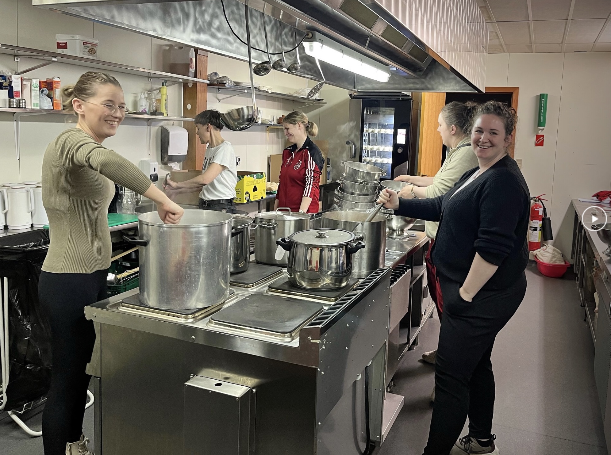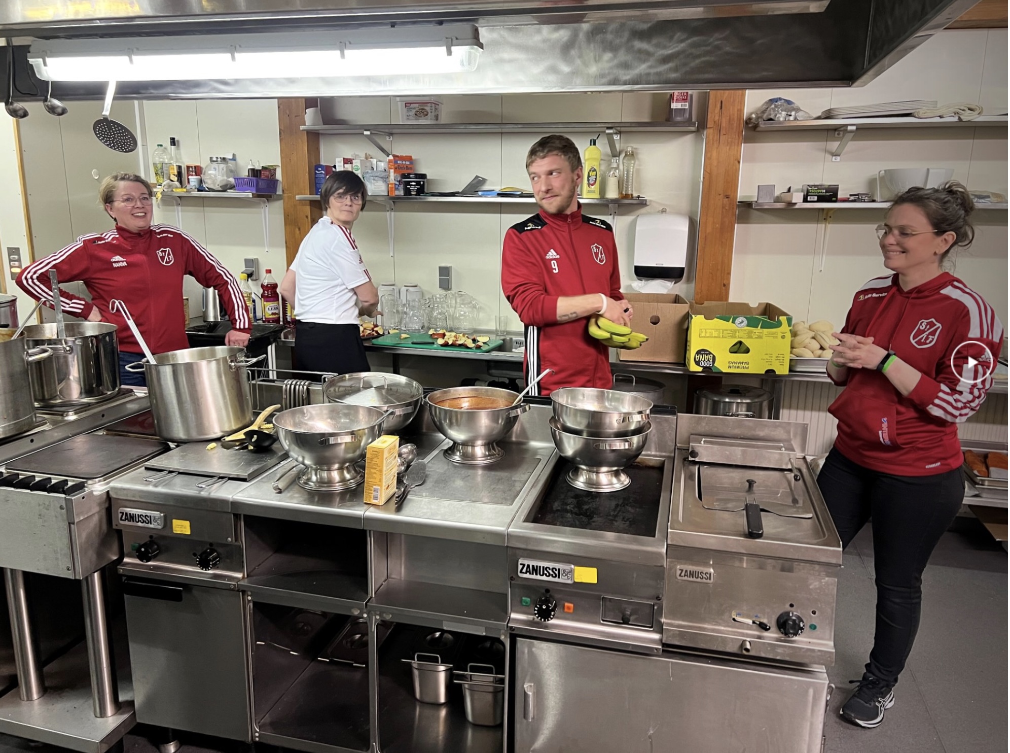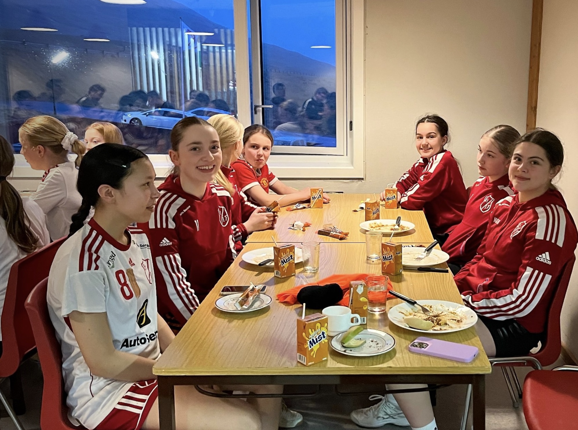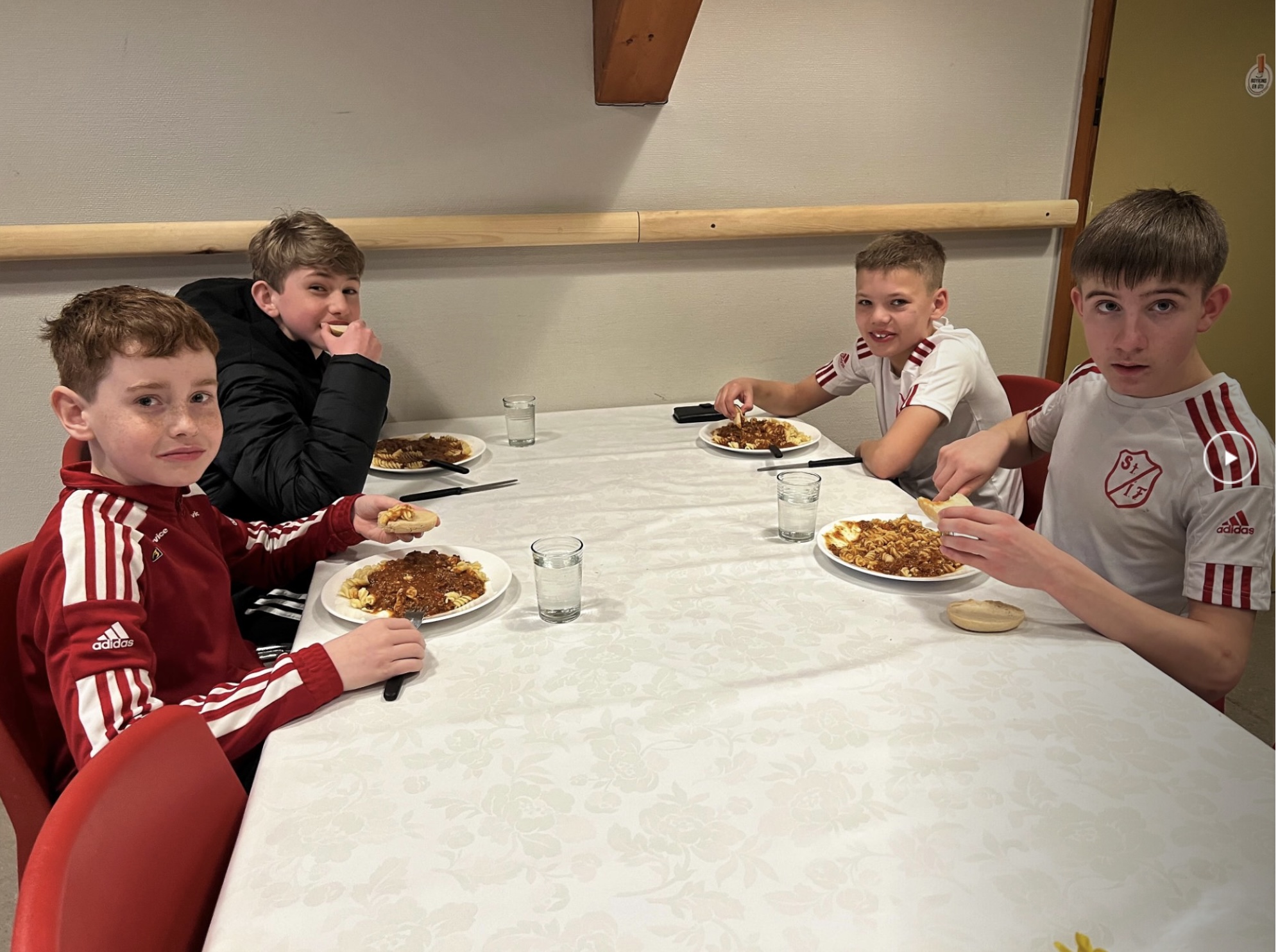 Aldursbólkarnir fingu døgurða í kaféteriuni, tá tey vóru liðug at spæla. Foreldrini í ymisku árgangunum skipaðu hetta sera væl og ruddaðu og vaskaðu upp eftir hvønn árgang.