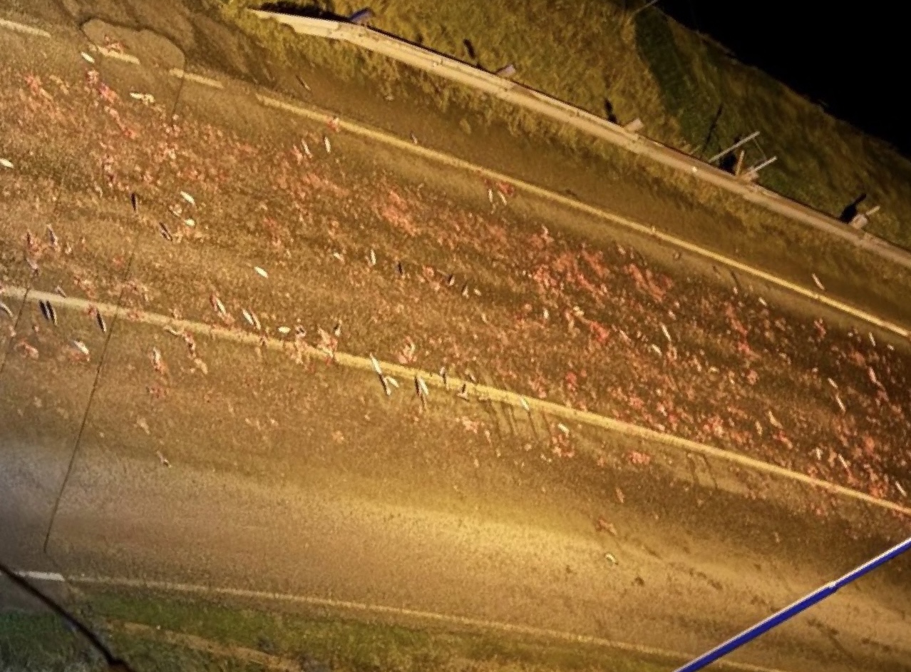 Júst hvussu og hvat er hent er ikki greitt enn, men ein stórur trailari, sum kom frá Tavuni í Leirvík, hevur mist alla lastina á vegin, sum flýtur í sild. Hetta var umleið klokkan 17:30.