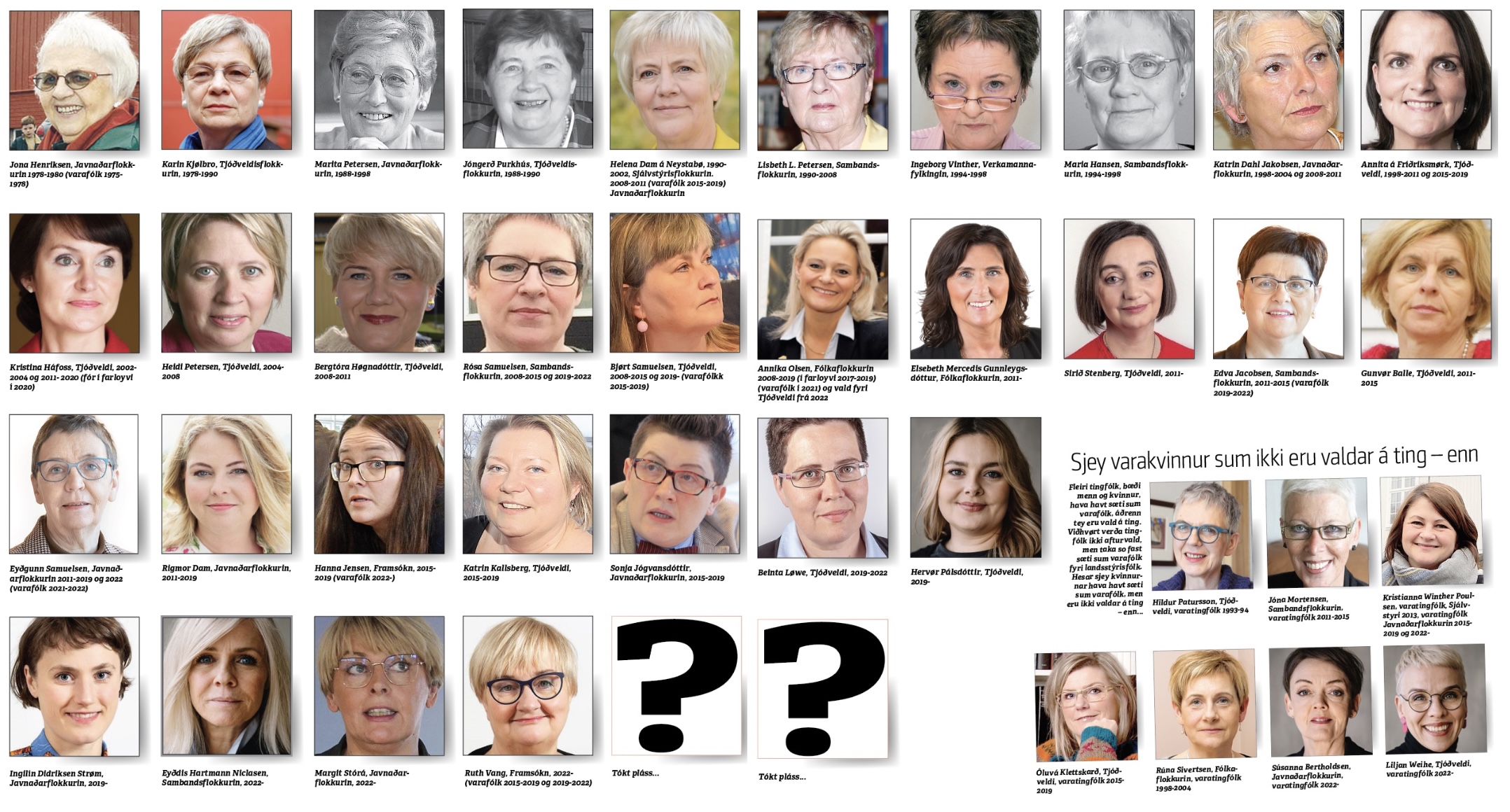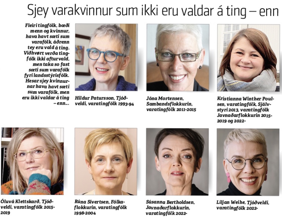 Lesið meira um kvinnur í politikki í Sosialinum í dag. Sosialurin fæst í leysasølu kring landið - og haldarar kunnu lesa blaðið á www.sos.fo
