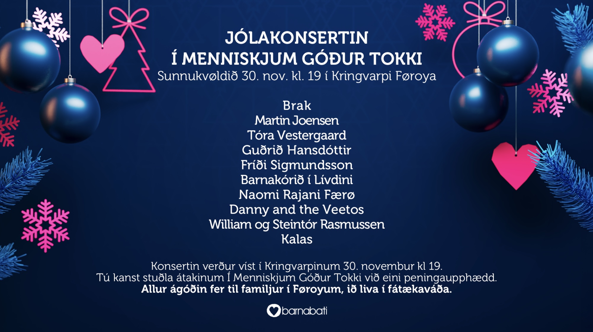 Jólini eru ein tíð við gleði og góðum minnum. Men veruleikin í Føroyum í dag er tann, at fleiri enn 1000 børn vaksa upp í fátækaváða sambært tølum hjá Hagstovuni. Fyri hesi kunnu jólini vera ein tung tíð merkt av stúran heldur enn ein gleðistíð. Fátækaváði merkir ikki bert trong fíggjarlig kor, men er eisini ein sosial avbjóðing, sum kann ávirka menning, sjálvsálit og trivnað hjá einum barni ella ungdómi.