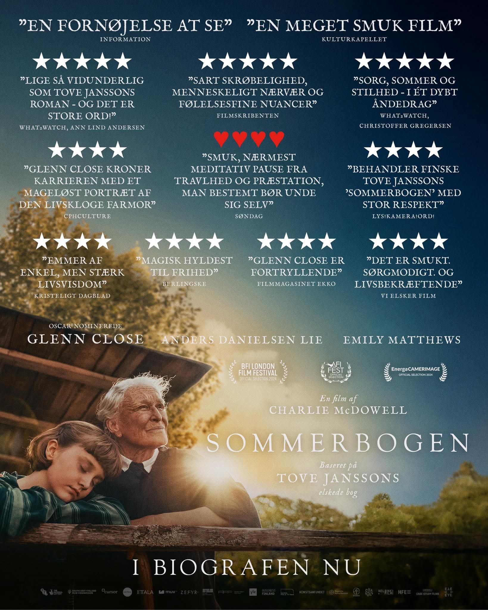 ”Summarbókin” er ein gandakend og tó verulig søga, ið ikki er um Mumitrøll, men um gentuna Sophiu og ommuna, her leikt av Glenn Close, eitt summar á eini lítlari óbygdari í oyggj í finska skergarðinum.