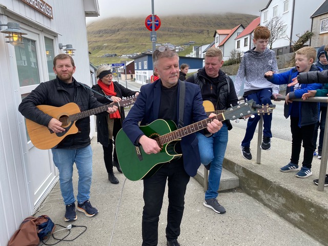 Síðani gekk leiðin vestur til Meinigheitshúsið, har byrjað varð við sangi, innan ymisk spøl vóru á skránni, og inni var kaffi og okkurt søtt at fáa.
