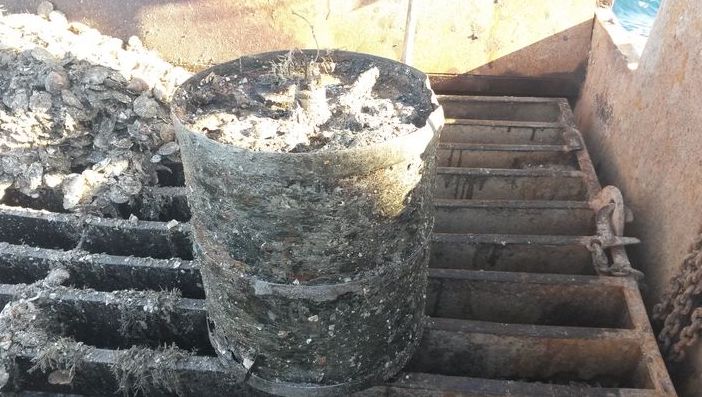 Tá tú fiskar við dreggi eftir sandbotninum, er ikki óvanligt, at ymiskt burturkast kemur í, sum stavar frá mannahond, og tá mest er í av ymiskum skrambli, kann hetta ganga út yvir veiðina eftir skeljum.