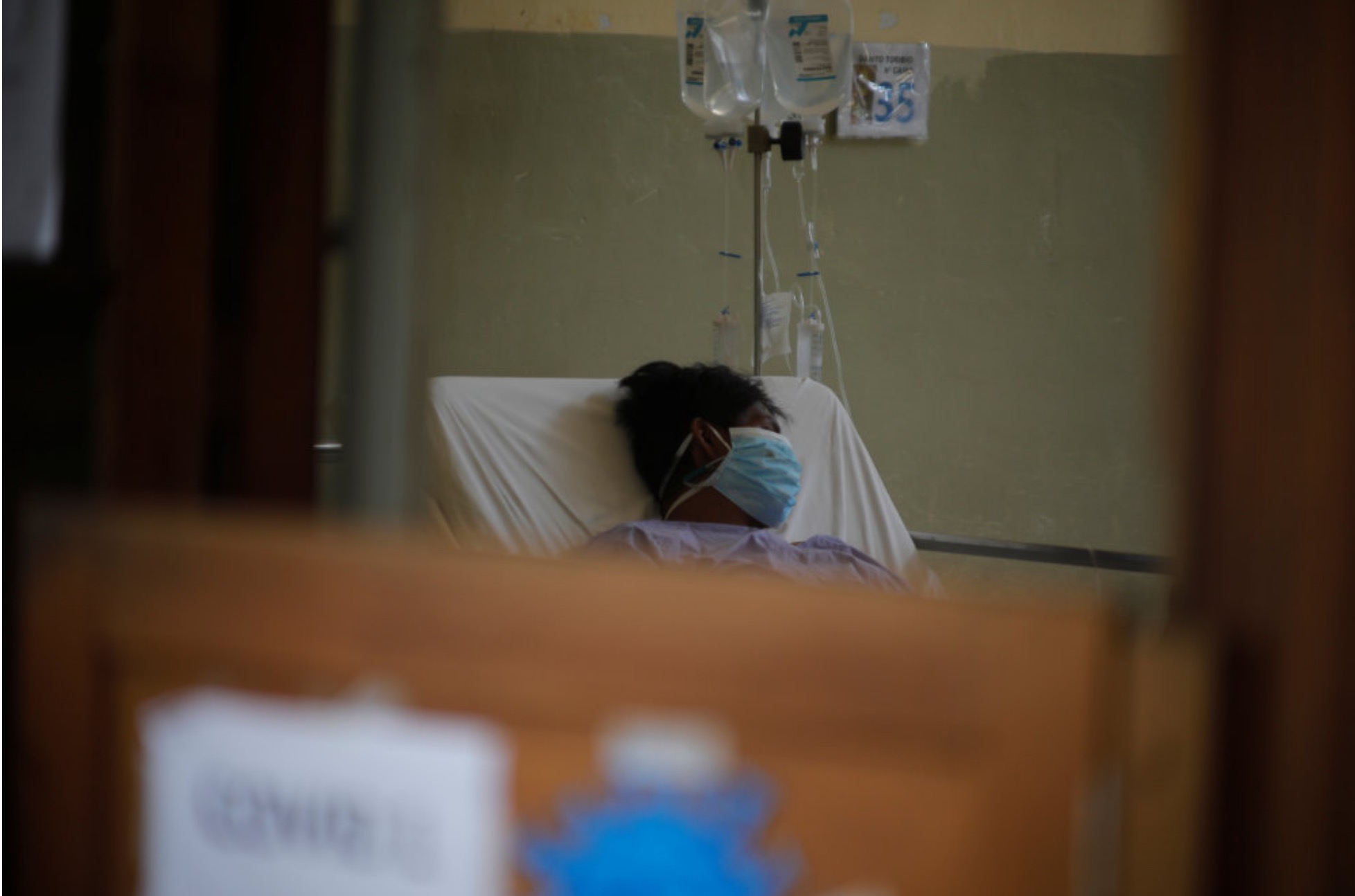 Ein sjúklingur er innlagdur við Covid-19 á sjúkrahúsið Dos de Mayo í høvuðsstaðnum í Peru, Lima. Samstundis er kjak um arbeiðið hjá Heimsheilsufelagsskapinum., eftir at USA hevur tikið stuðulin til WHO aftur. - Mynd: Stringer/Reuters