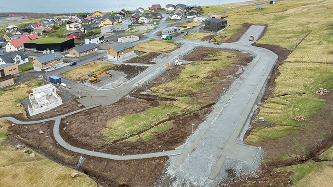 - Her er talan um eitt nú avgrevstur, planering, kloakk-og vatnleiðingar, innføringar, kantsteinar og montering av ljóssteyrum.