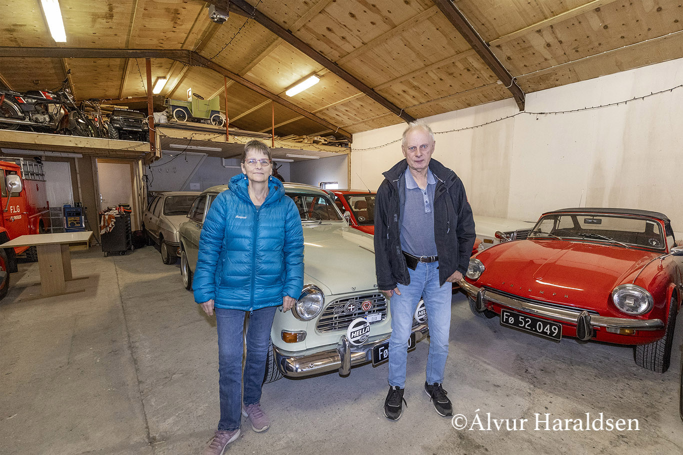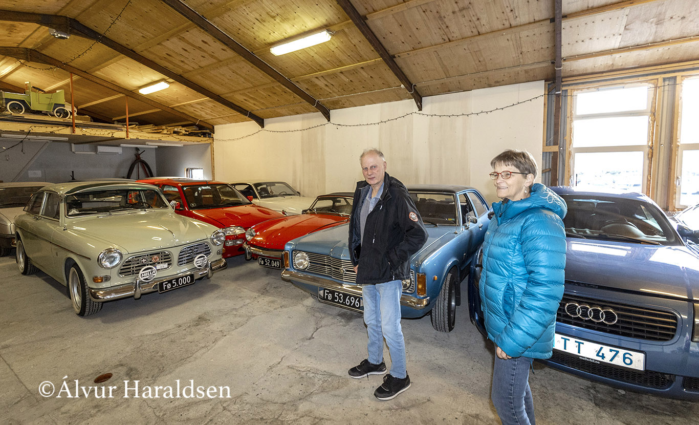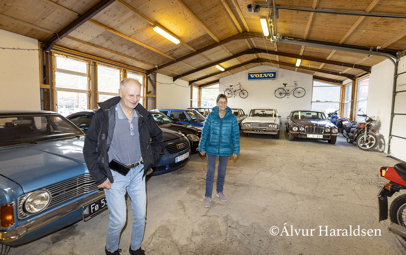 Marjun og Jákup Frants Larsen hava altíð havt áhuga í gomlum bilum og eiga fýra ellisakfør. Marjun er forkvinna í felagnum Fuglafjarðar Ellisakfør. Jákup Frants var skrivari hjá Fuglafjarðar kommunu í 46 ár. Tá hann fór á pensjón gjørdist telefonin, sum áður hevði ringt dag og nátt, púra kvirr. Tað var trupult í fyrstani, men í dag gleðast hjúnini um at tey hava nógva tíð saman